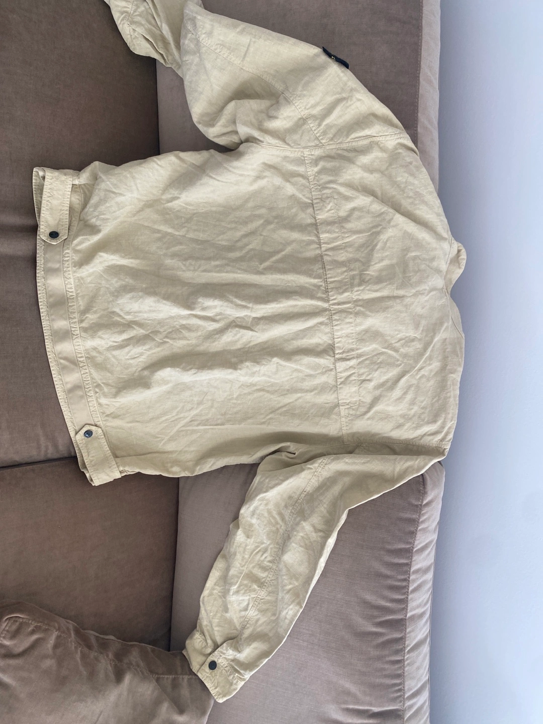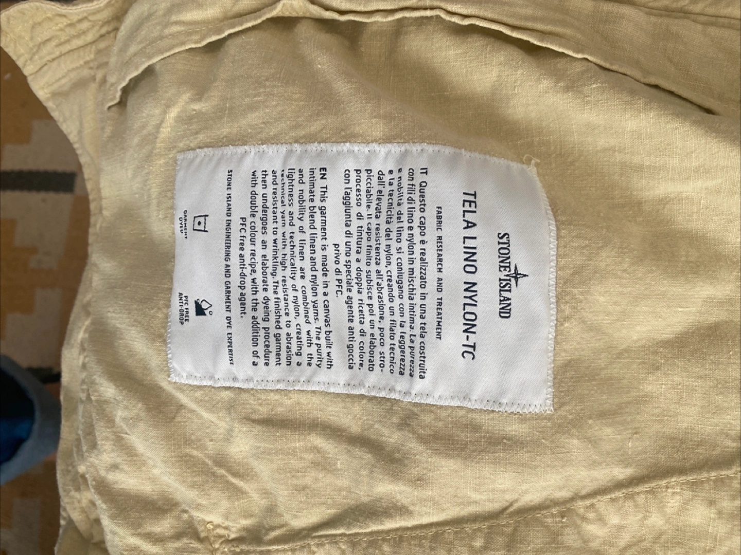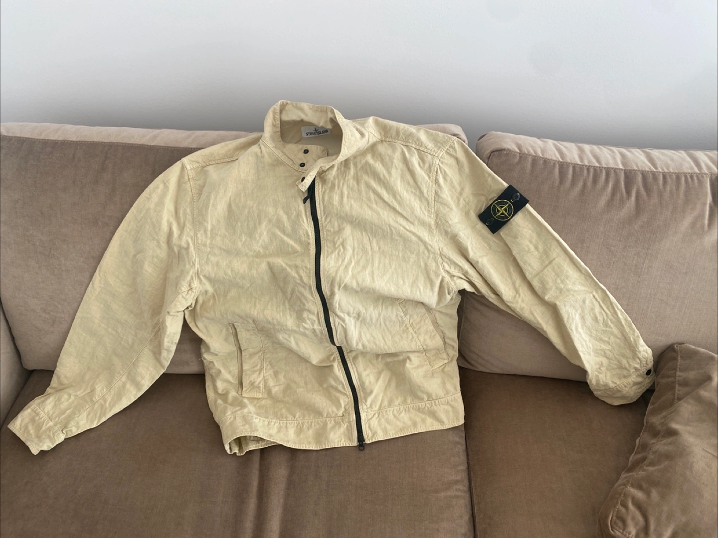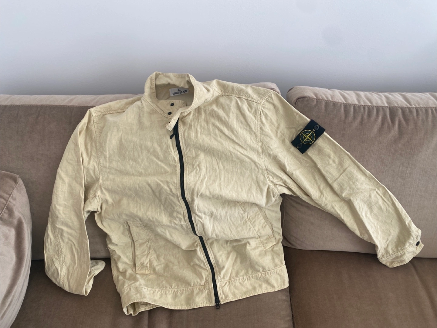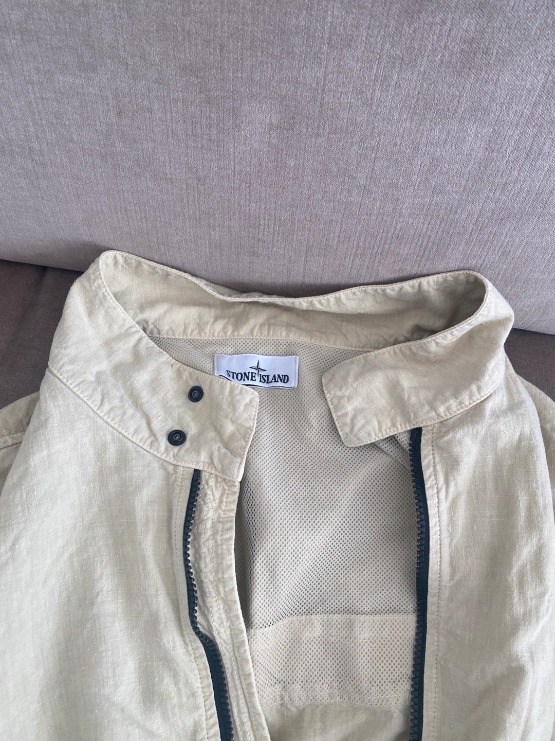 Selling a Stone Island Tela Lino Nylon-TC Jacket. This garment is made of a canvas built with intimate blend linen and nylon yarns, creating a lightweight yet abrasion resistant textile. The color is a light beige. It has a full zipper and the Stone Island badge on the left arm New Condition never washed thinking i will wear it but never did.