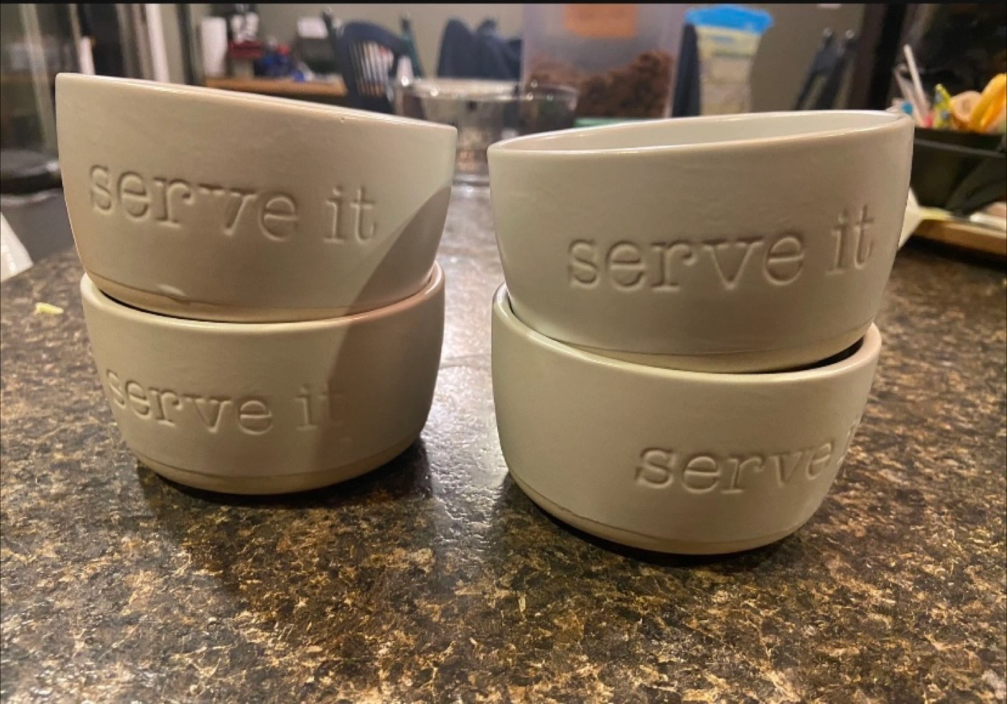 In great condition and ready to serve. The bowls are microwave and dishwasher safe.