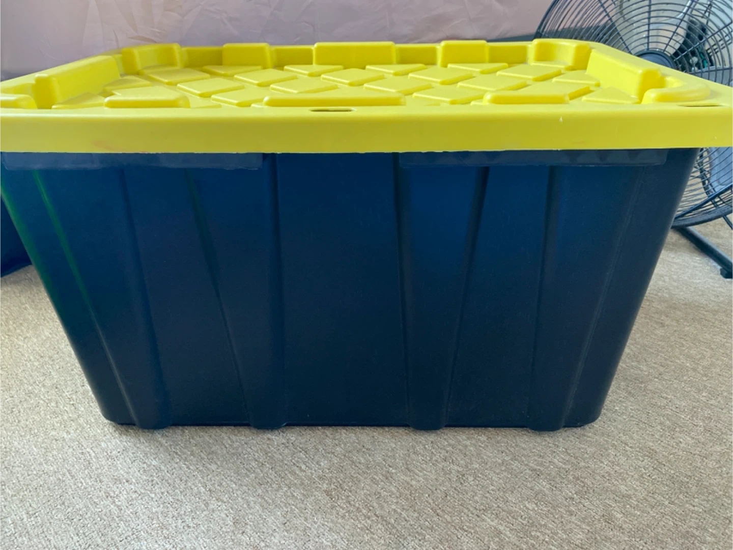 10Selling a sturdy storage container with a black base and yellow lid. It's in good condition and ready to help you organize your space!