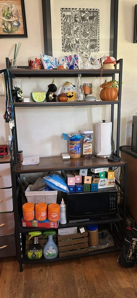 6-tier storage rack with optional wine bottle storage. Like new, already assembled. Photo shown is the STOCK photo.