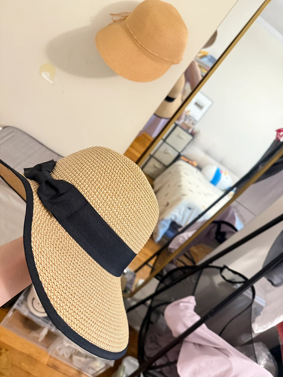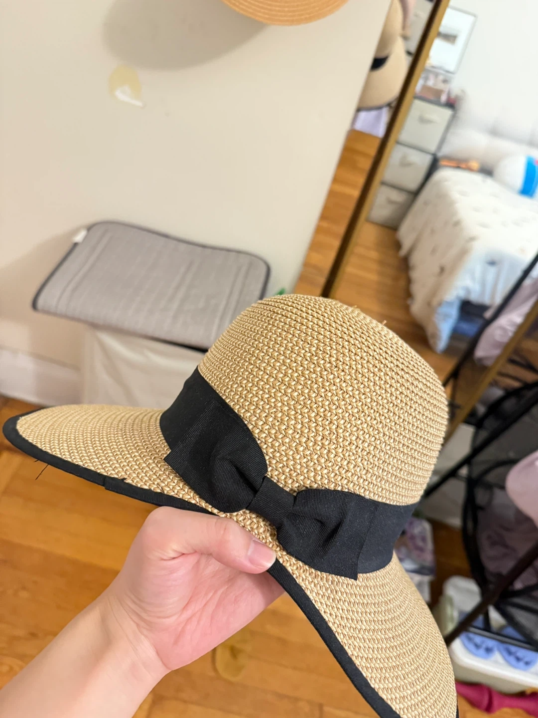Selling a cute straw sun hat! It features a stylish black bow. Perfect for sunny days and outdoor activities