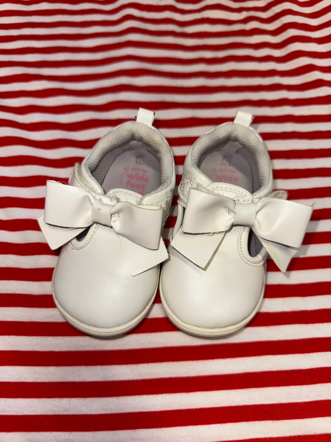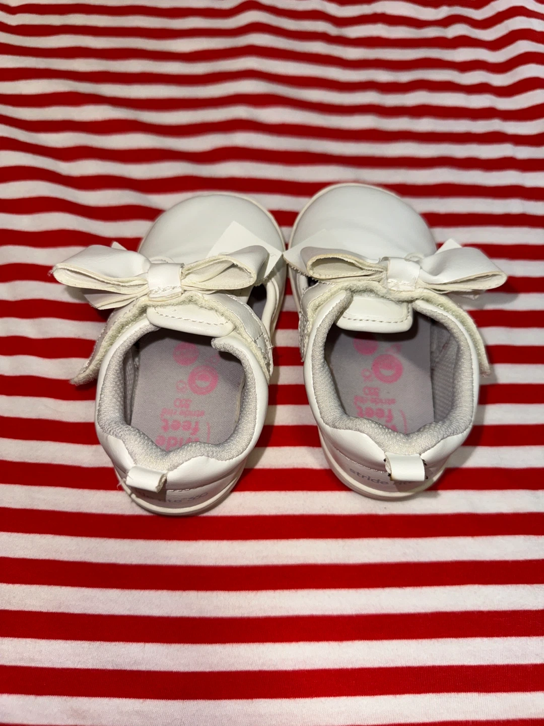 Cute pair of white baby shoes from Stride Rite! They have a sweet little bow detail and are in good condition for your little one. Size 6T removable insole for wide feet.