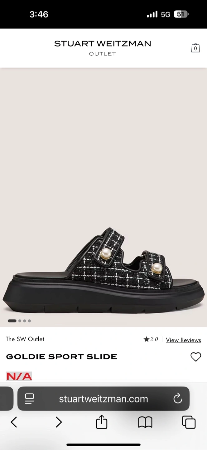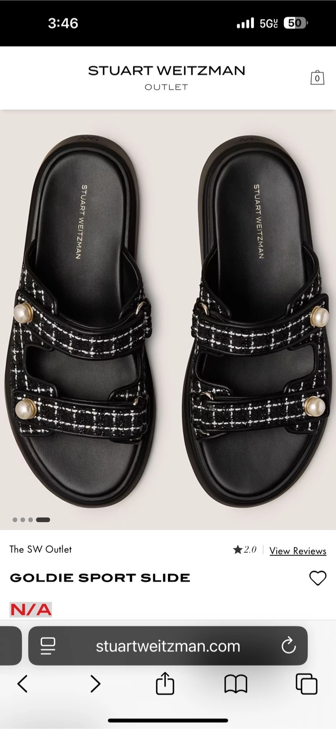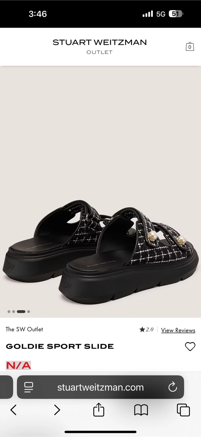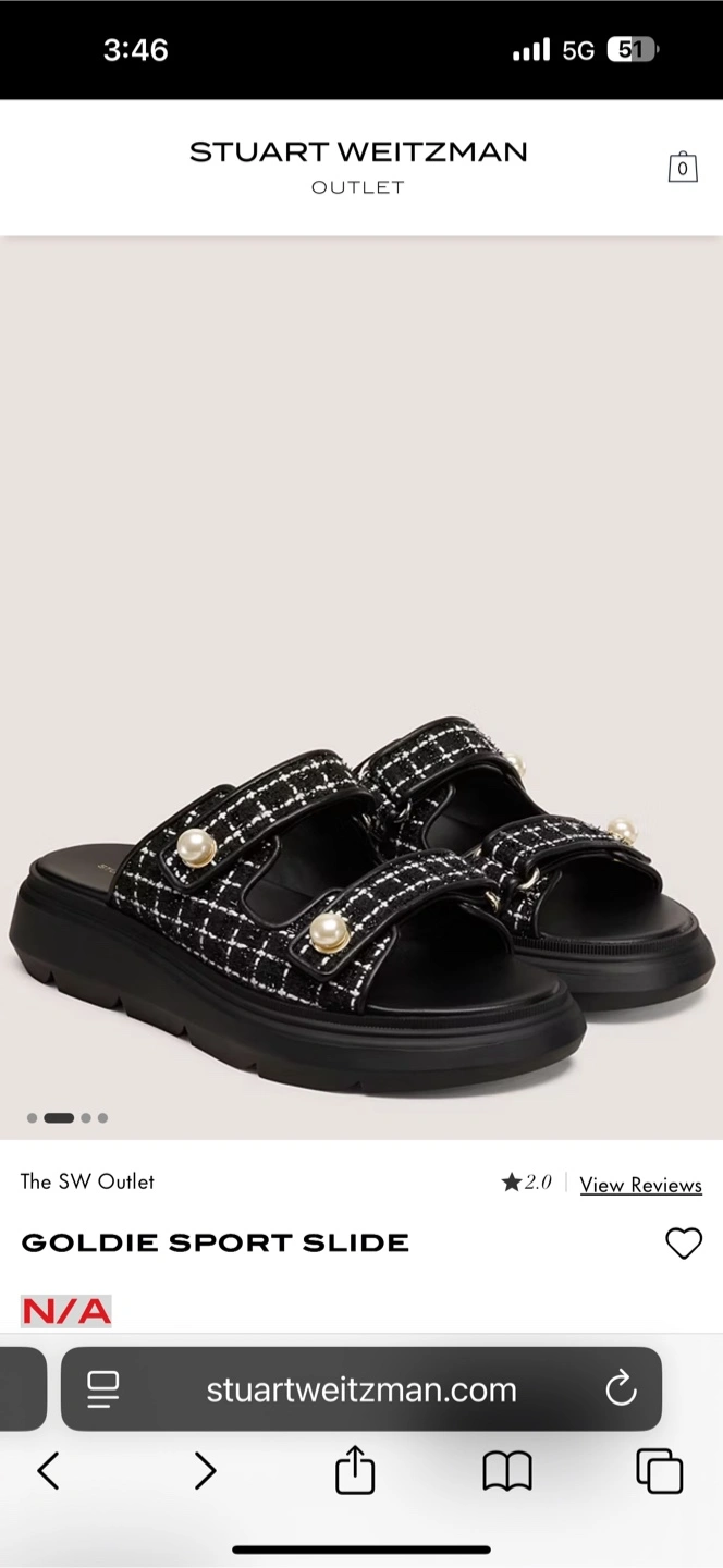 Stuart Weitzman Goldie Pearl Tweed Black Sandals Sport Slide