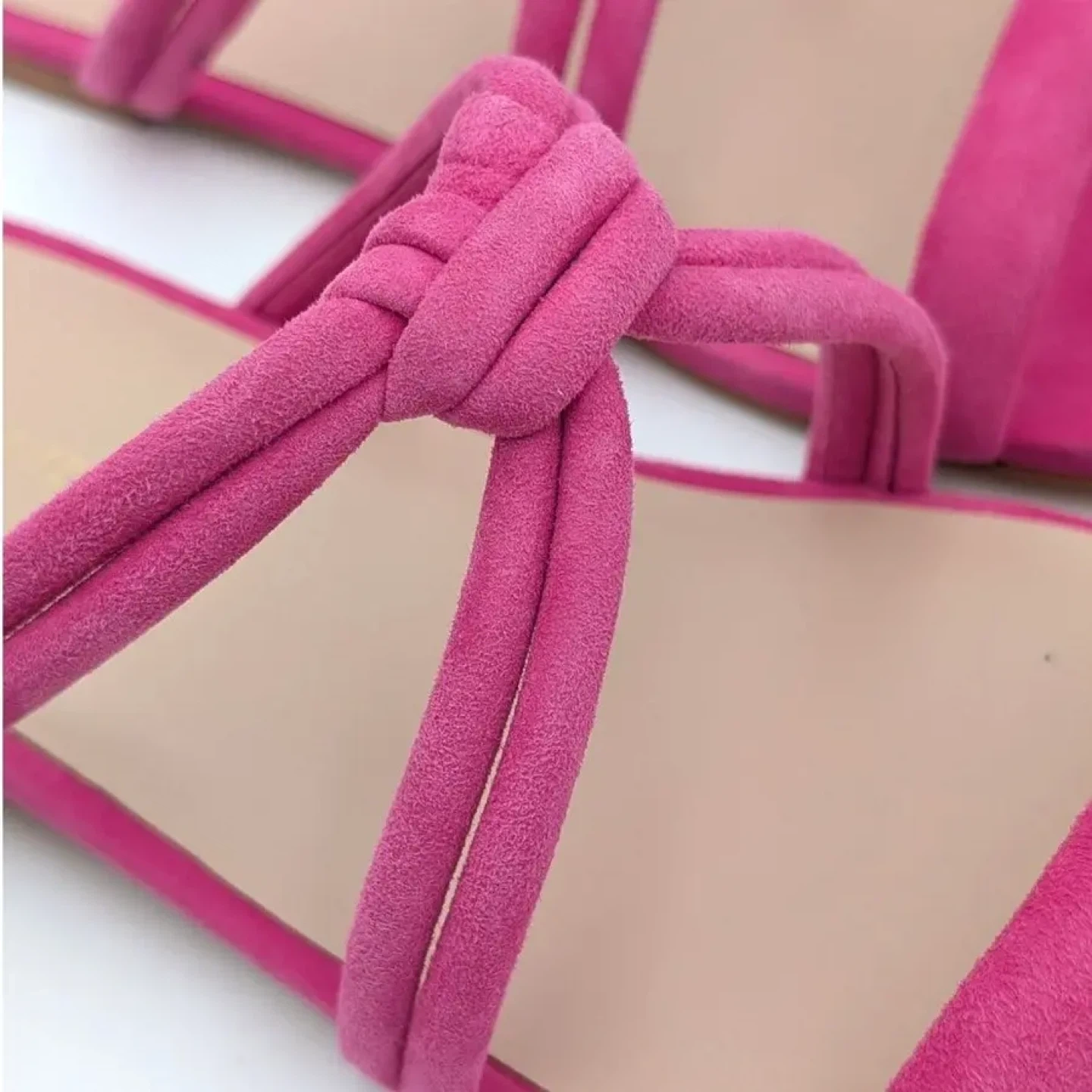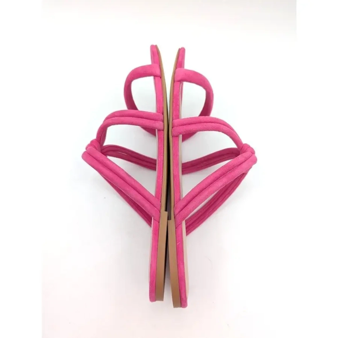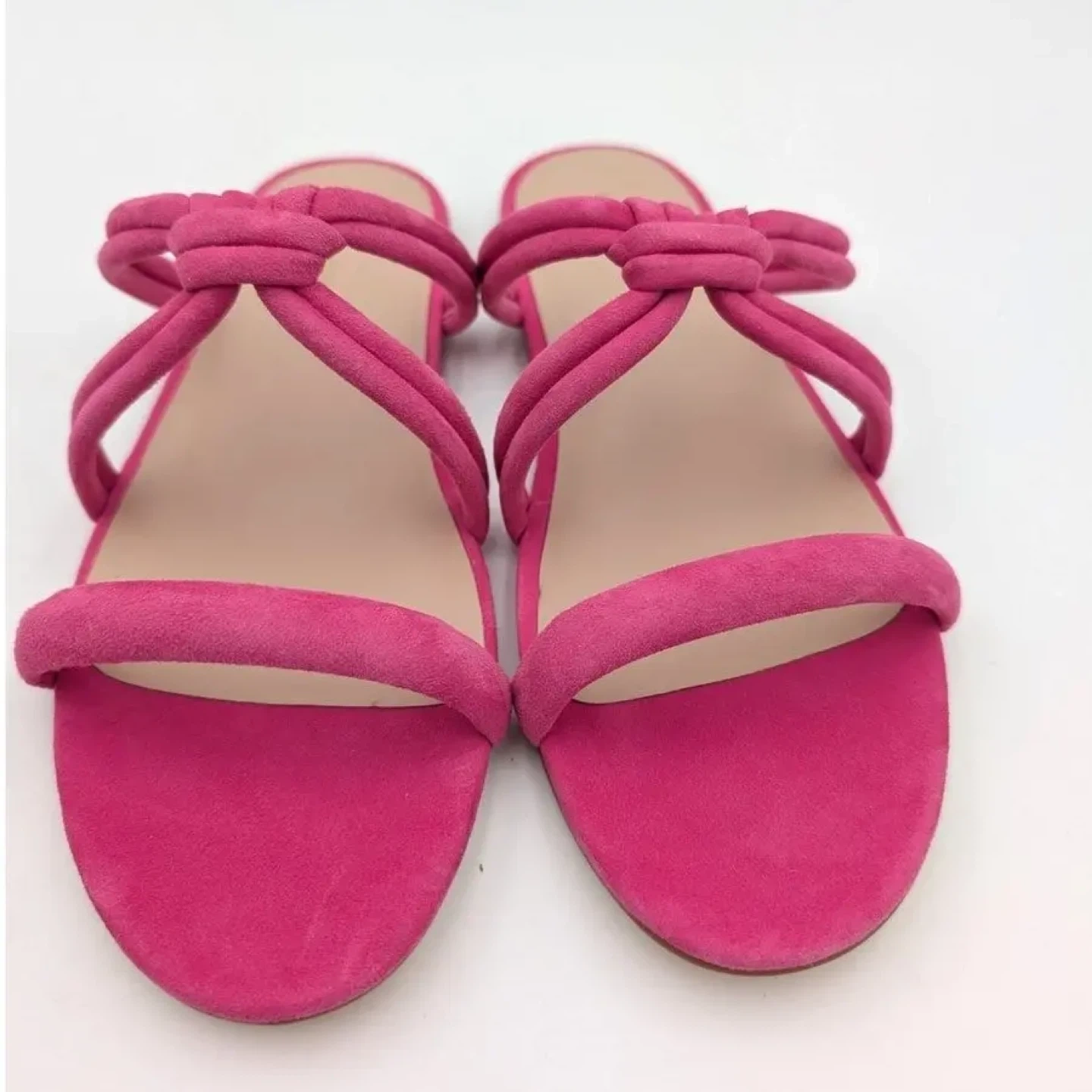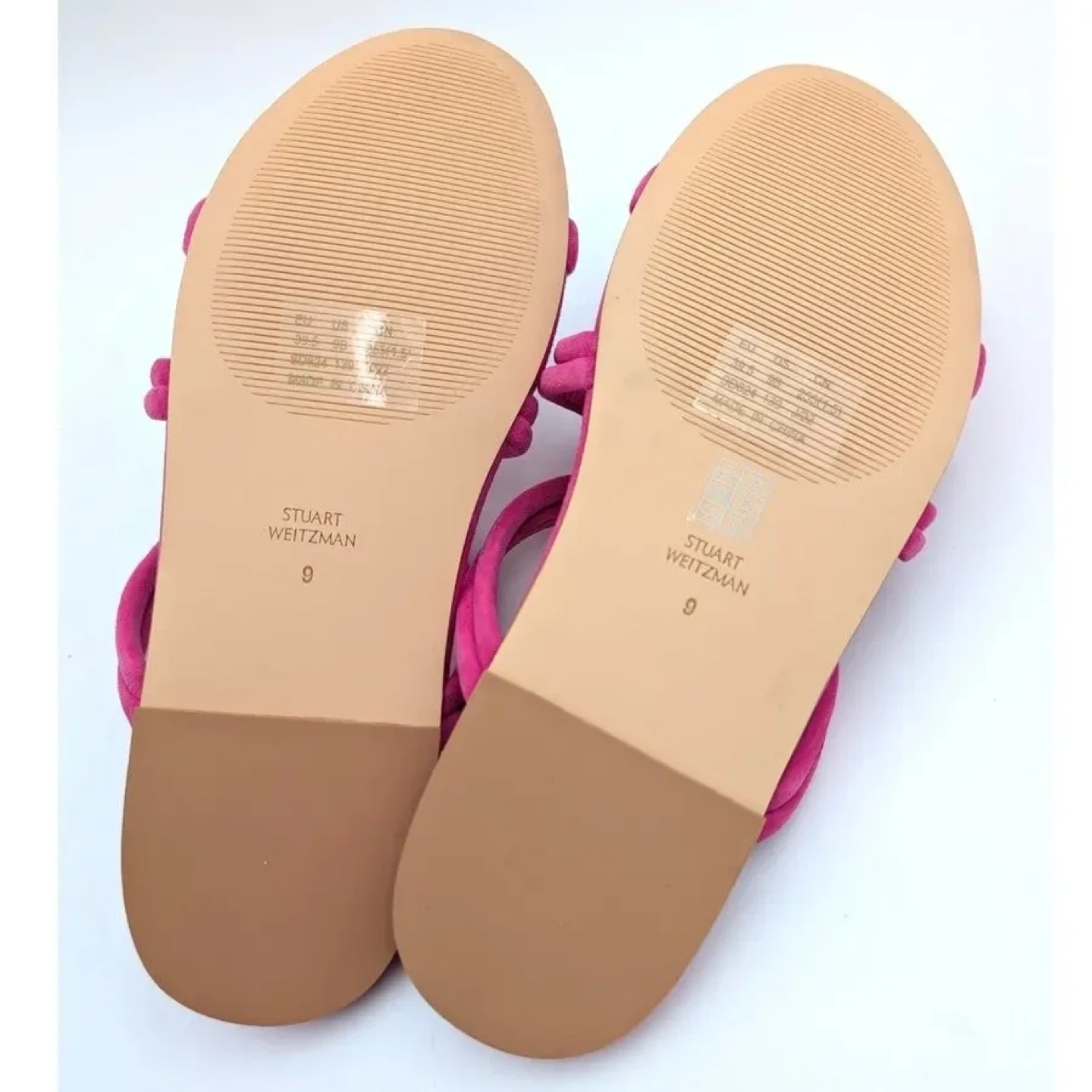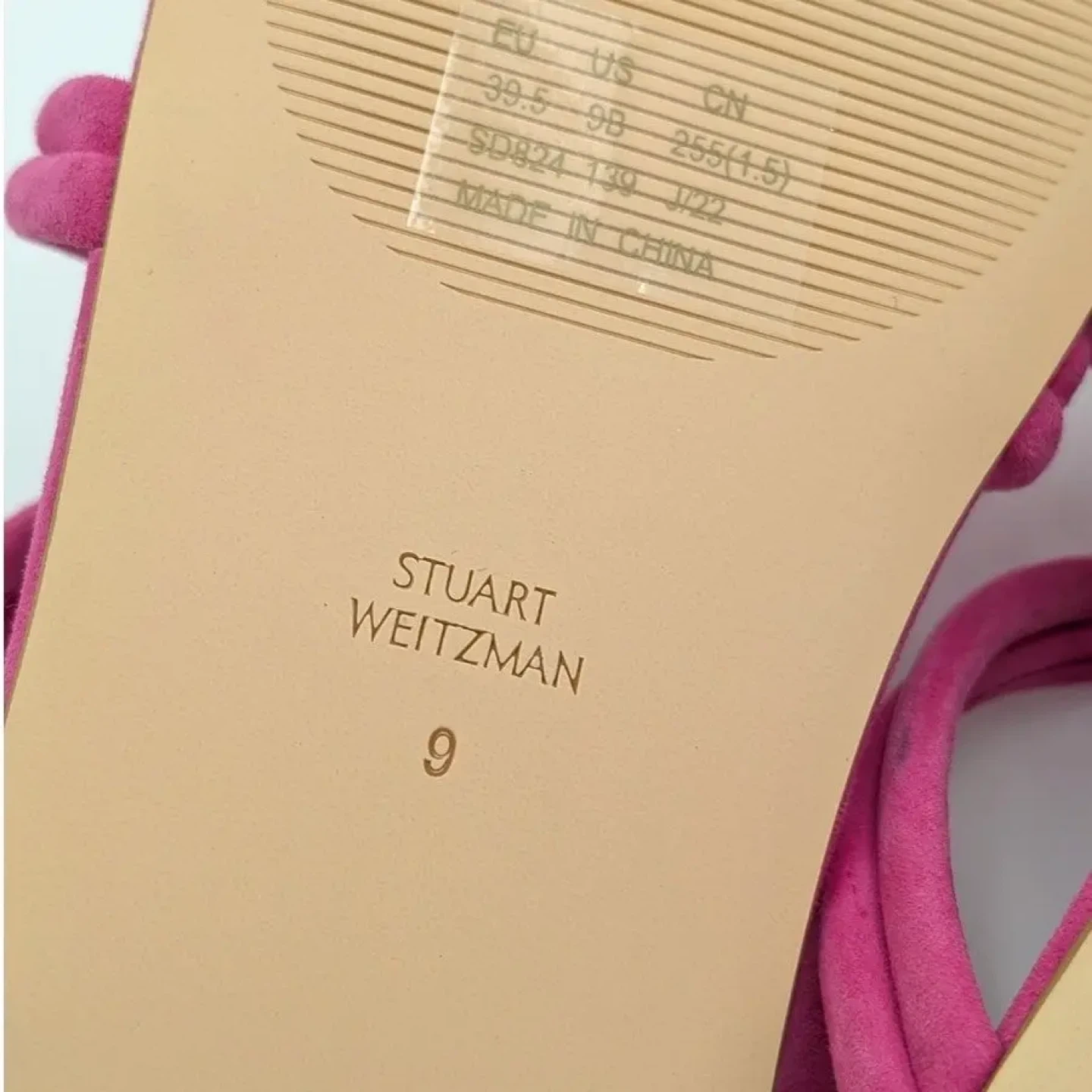 These Stuart Weitzman sandals are a vibrant pink and a size 10. They feature a soft suede material. Perfect for adding a pop of color to your outfit! I have second pair if interested in a smaller size 9