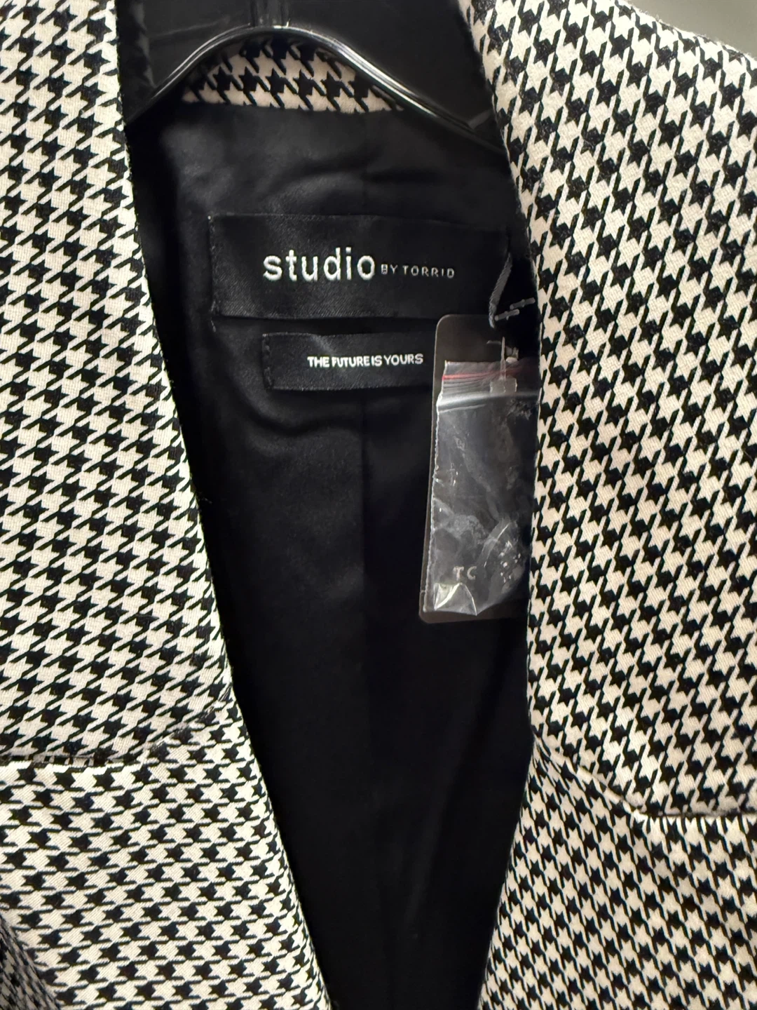 Here's a stylish Studio by Torrid vest with a classic houndstooth pattern! It's a great layering piece to elevate any outfit. Perfect for adding a touch of sophistication to your wardrobe