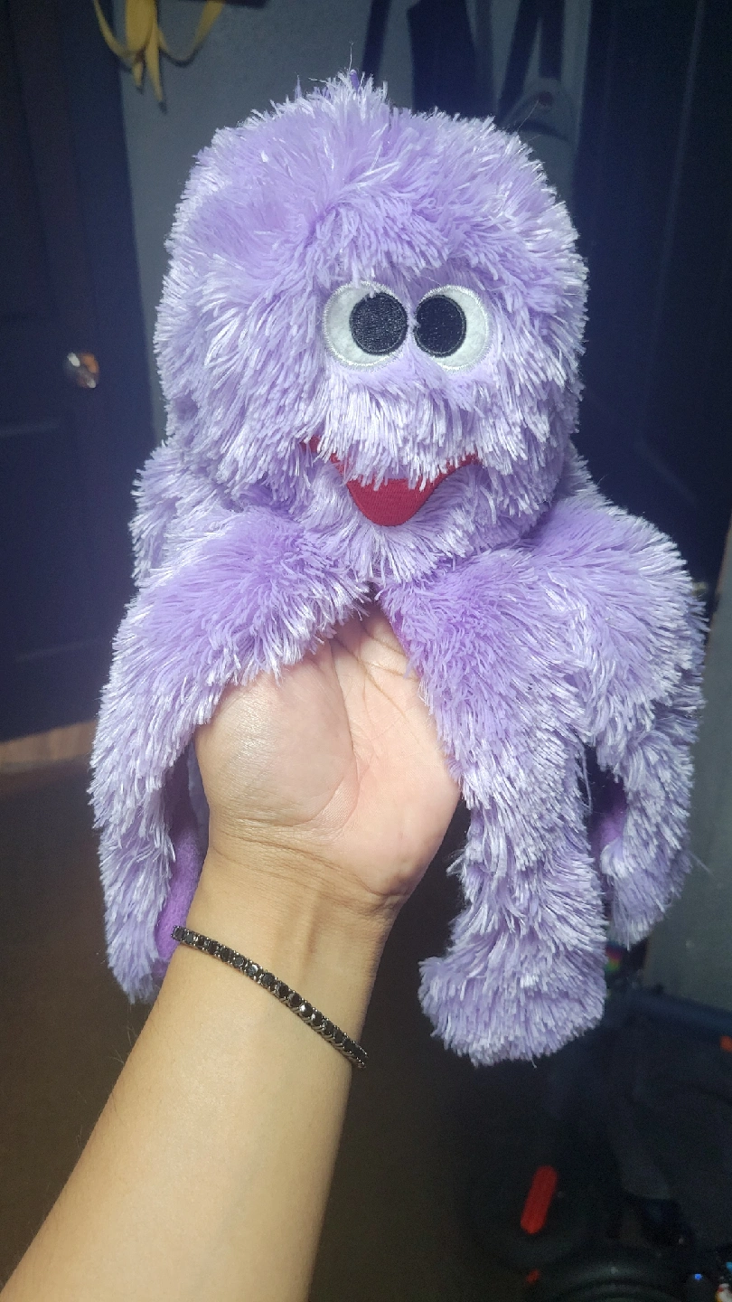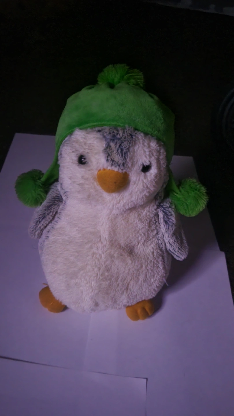 10I'm selling these cute plush toys! One is a penguin wearing a green hat, and the other is a fluffy purple monster. They are both in good condition and looking for a new home