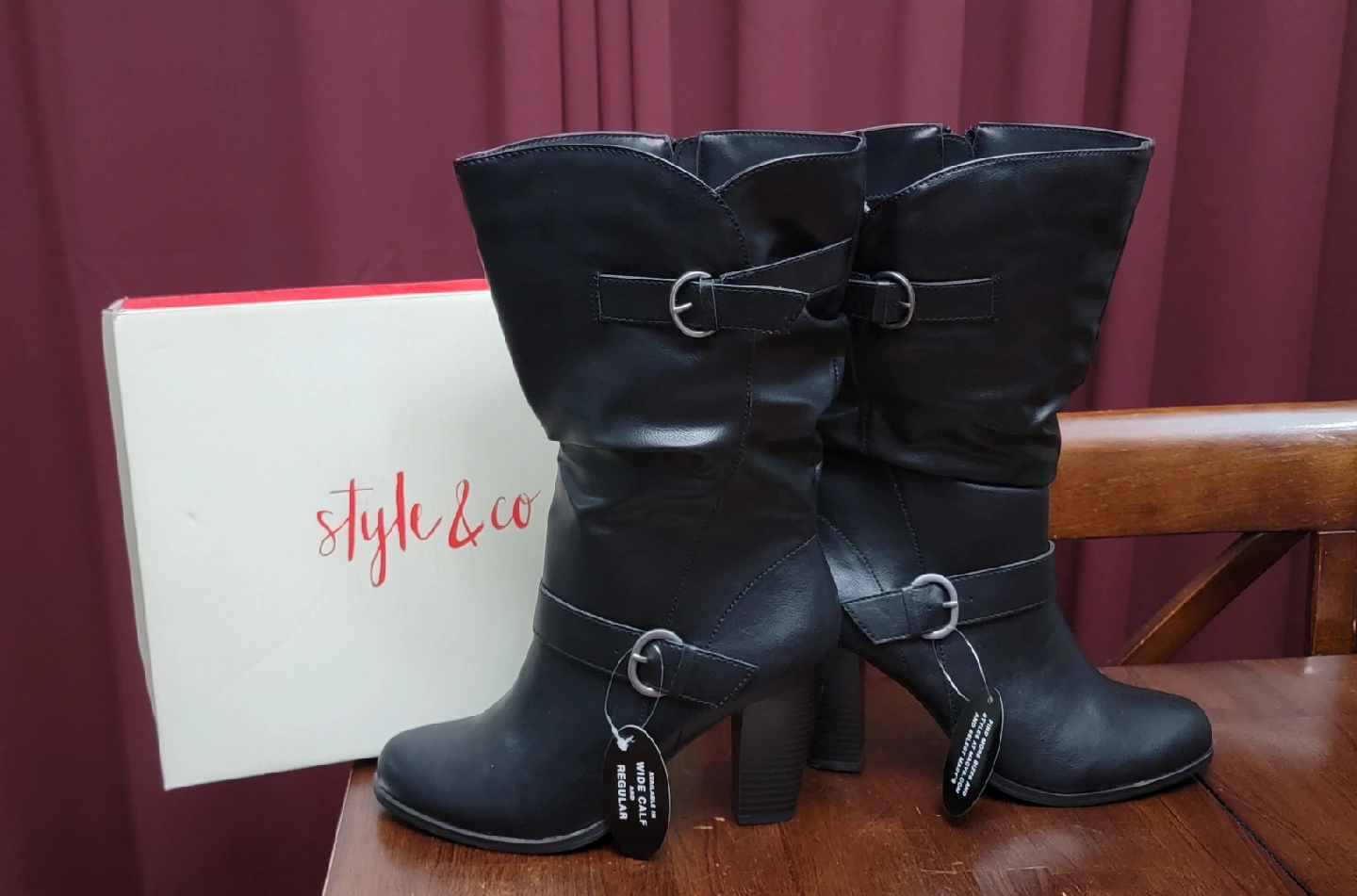 Selling a pair of Style & Co black boots in size 9M! They are brand new and come with the original box. These boots have a stylish design with buckle detailing, perfect for adding a touch of flair to any outfit