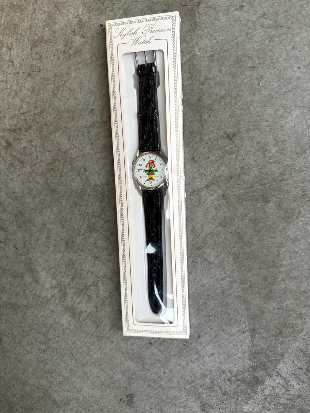 10Selling a Keebler Elf Stylish Precision Watch in its original packaging! It features a black band and a charming design on the watch face. Perfect for collectors or anyone who appreciates a unique timepiece