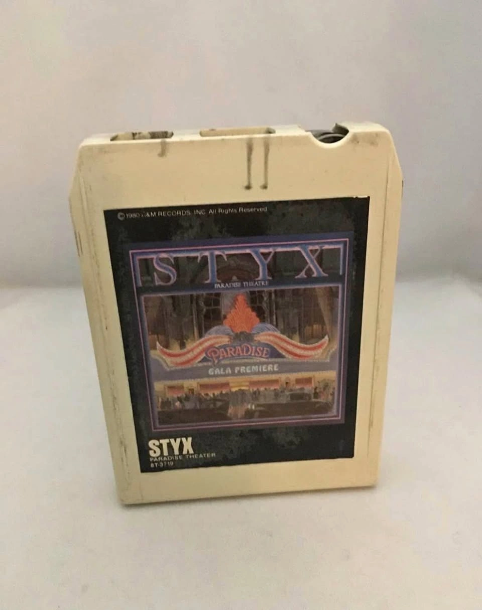 15This is a used STYX Paradise Theater 8-Track. As it is seen the label is worn and has not been used NOR tested before listing. It has been in storage though so it's not been open to outside weather either. Please ask questions before buying, no returns.