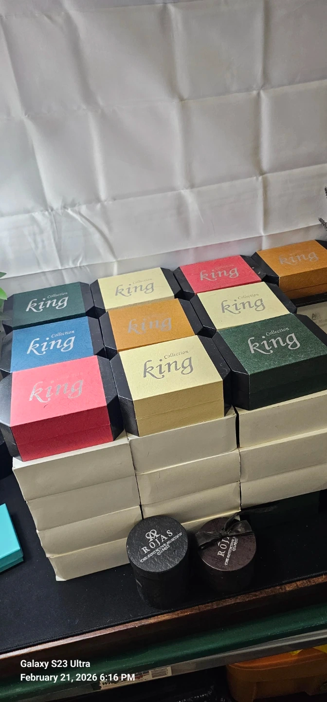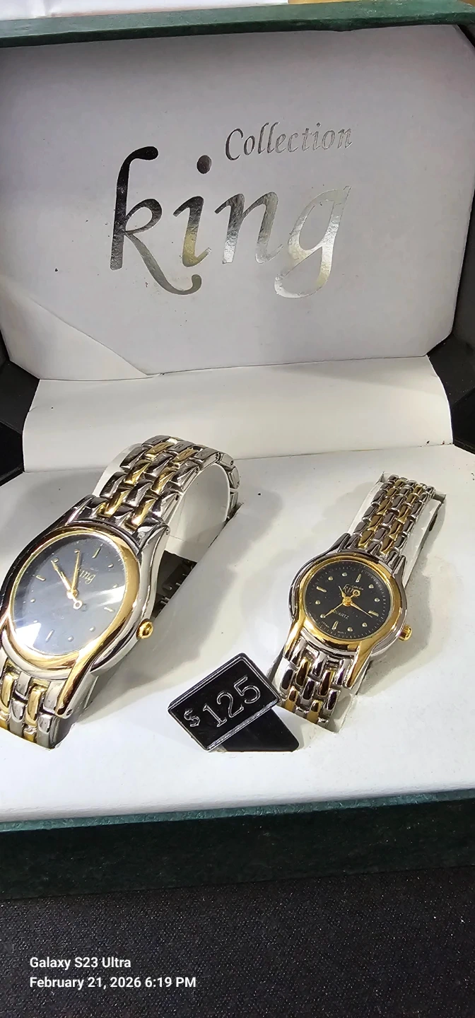 Bulk lot of 55 brand NEW Collection King / King quartz watches with presentation boxes (mix of colors). Clean classic styles, many two-tone silver/gold.