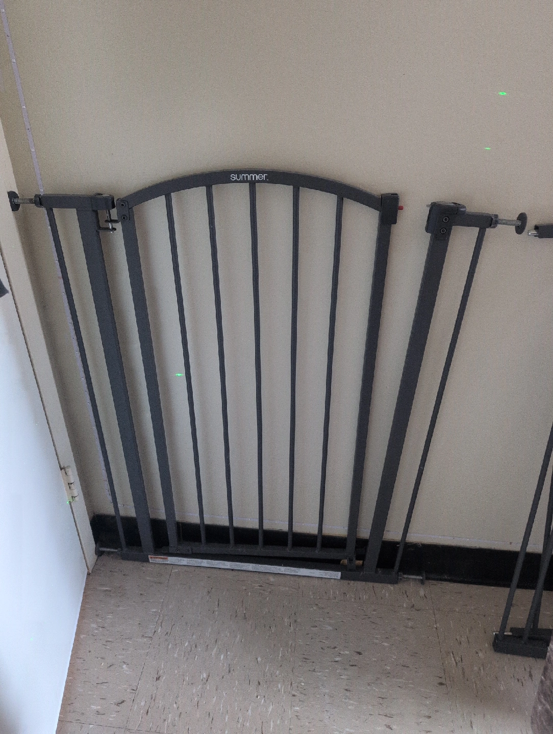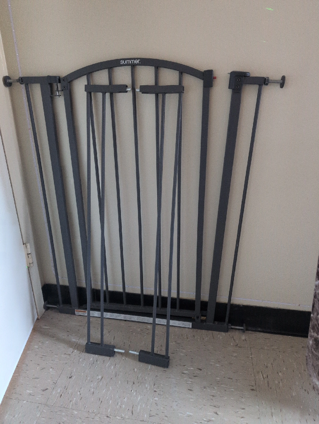 Selling a Summer Infant baby gate in gray. It's in good condition and ready to keep your little one safe! Perfect for doorways or hallways. Also great for pets.