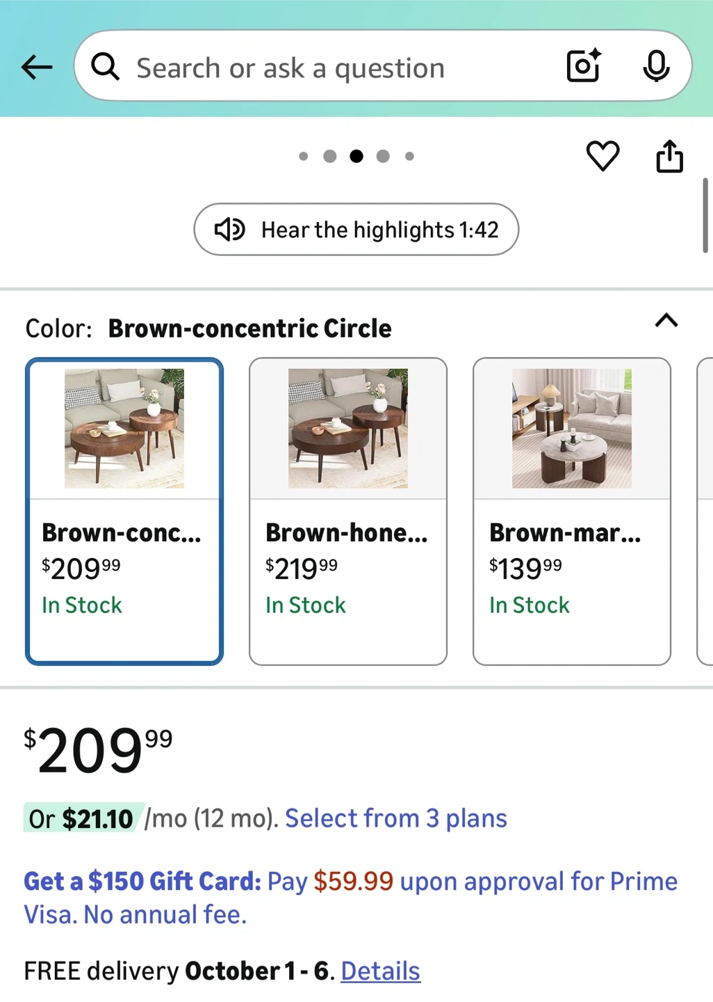 Never used β€” selling because I found another one that fits my room better. Modern concentric circle design, solid wood, excellent quality. πŸ“ Size: 31.5”D Γ— 50”W Γ— 20”H πŸ“Œ Sells for $209.99 on Amazon β€” letting go for only $99! πŸ“ Pickup near South Loop