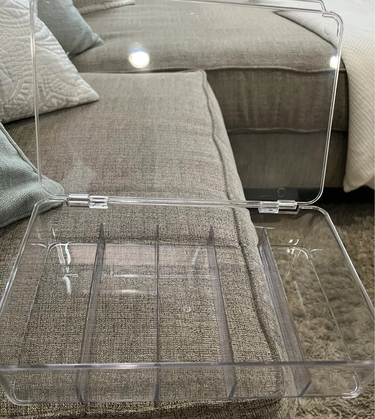 Selling a clear sunglasses organizer box. It's new and ready to keep your shades neatly arranged! Dimensions are approximately 10.6 x 7.3 x 2.4 inches