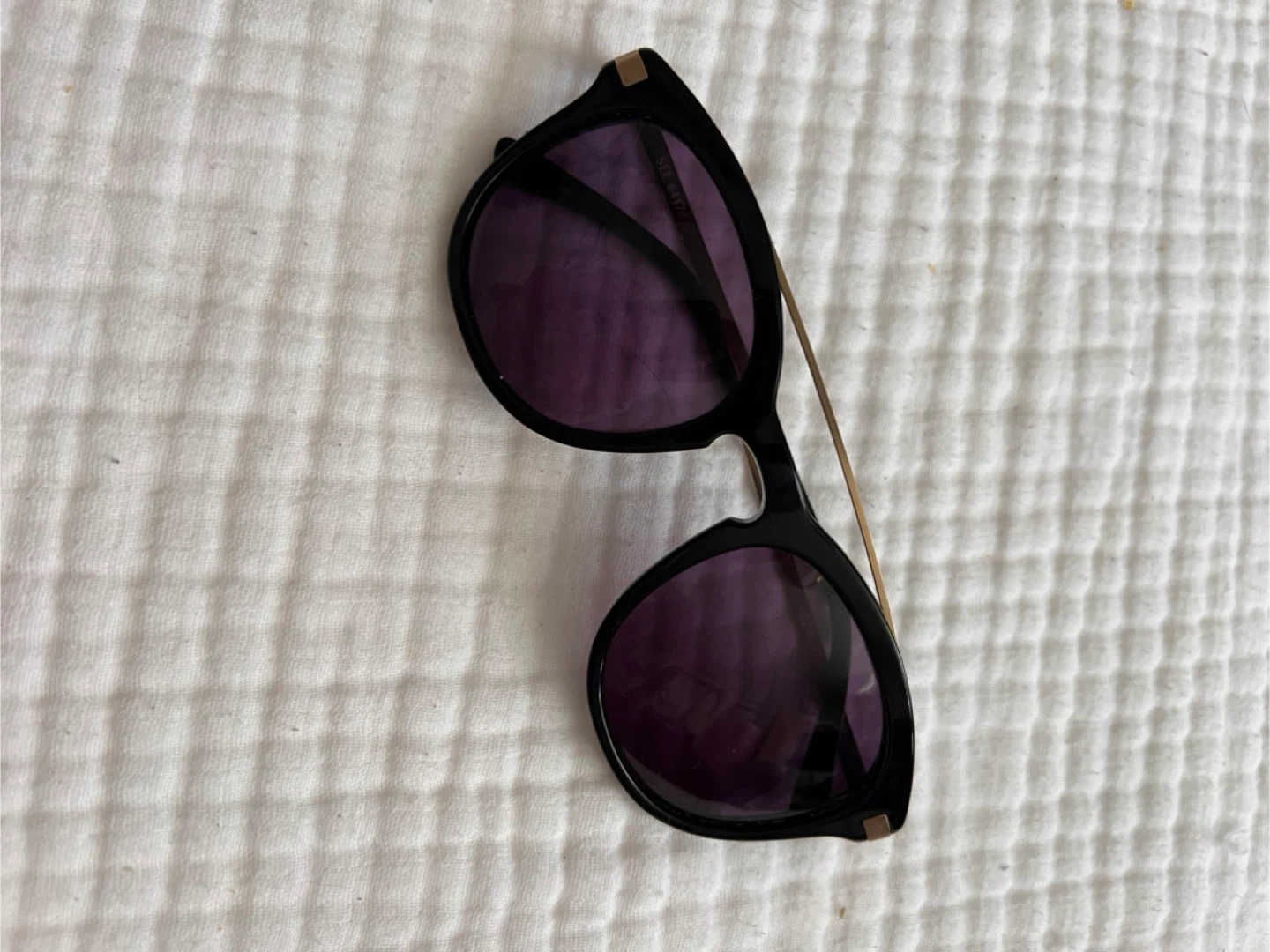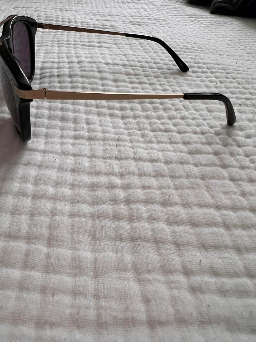 Selling a pair of sunglasses. They are black with gold accents. They are in great condition