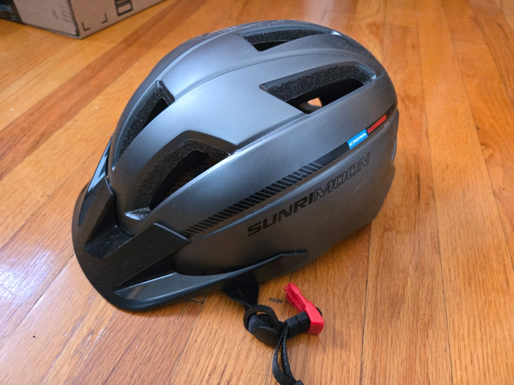 868Adult bike helmet. Gray color. Integrated rear safety light. Adjustable straps.
