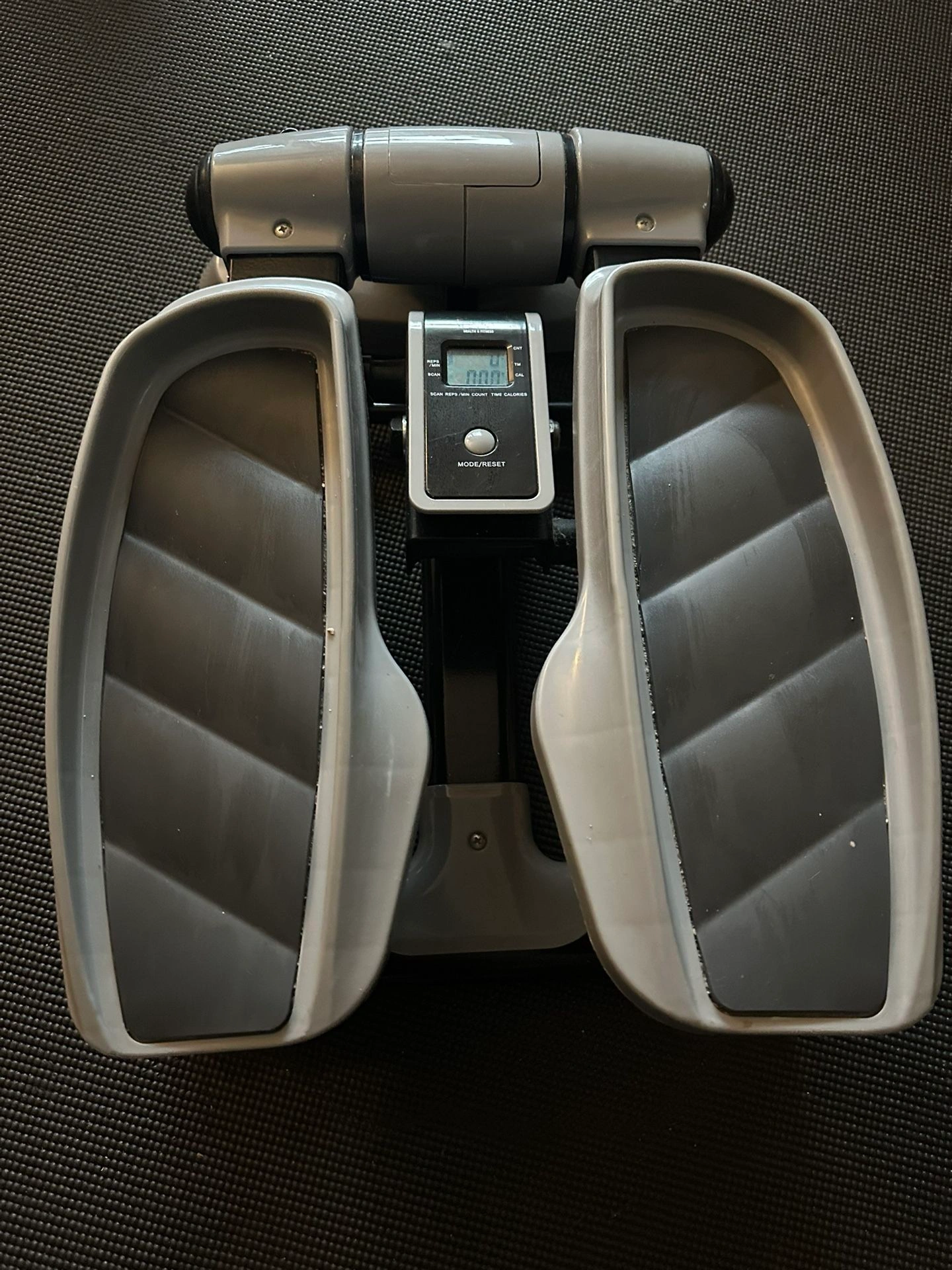 Compact, sturdy, and perfect for quick at-home cardio while watching TV. The Sunny Health & Fitness mini stepper gives you a smooth hydraulic stepping motion that works your legs, glutes, and core. Ideal for small spaces, it’s quiet, lightweight, and easy to store when not in use. Details: Smooth hydraulic resistance (non-adjustable) Digital monitor tracks time, step count, and calories Textured, non-slip foot pedals Compact and portable design Dimensions: approx. 16 x 12.5 x 13.5 in. Weight capacity: up to 220 lbs Note: Original arm resistance bands are not included Clean and fully functional. Used lightly and ready for a new home!