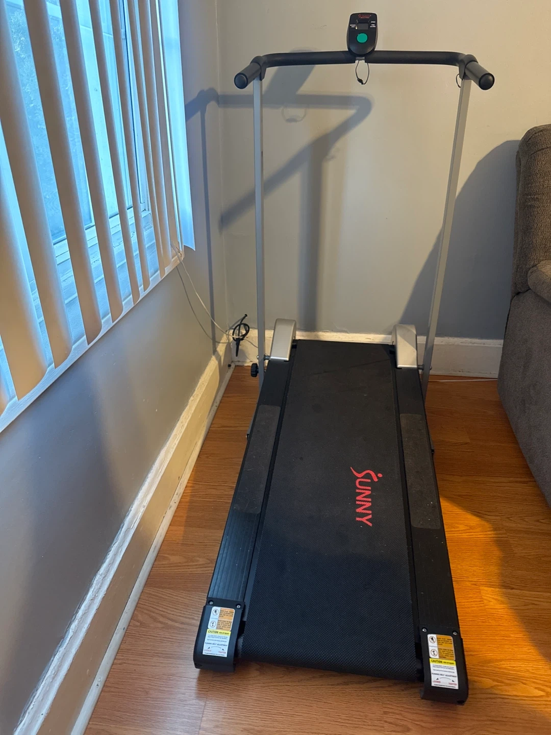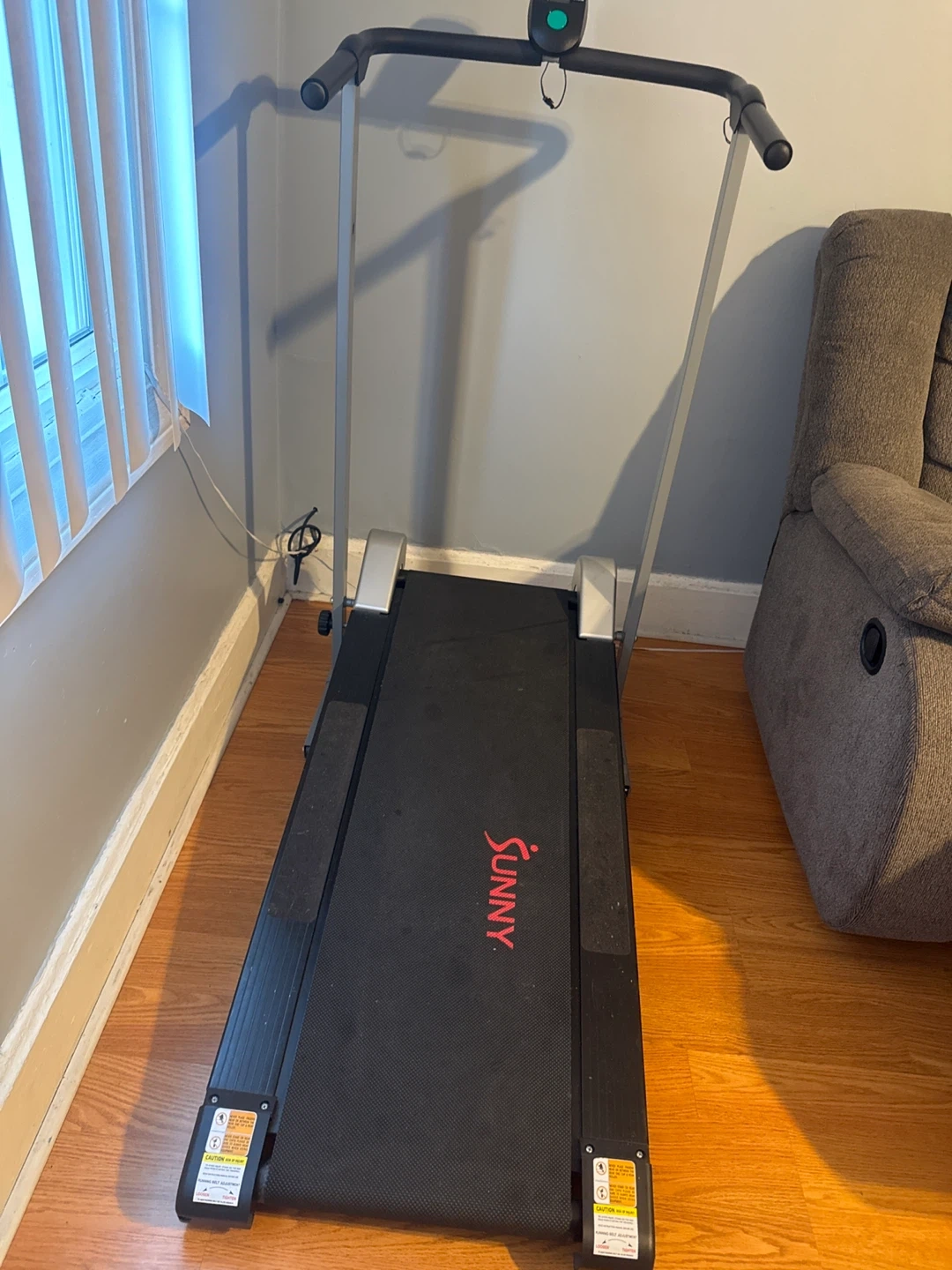 10Selling a treadmill from Sunny Health & Fitness. It's in good condition and ready for a new home. Perfect for getting your steps in!
