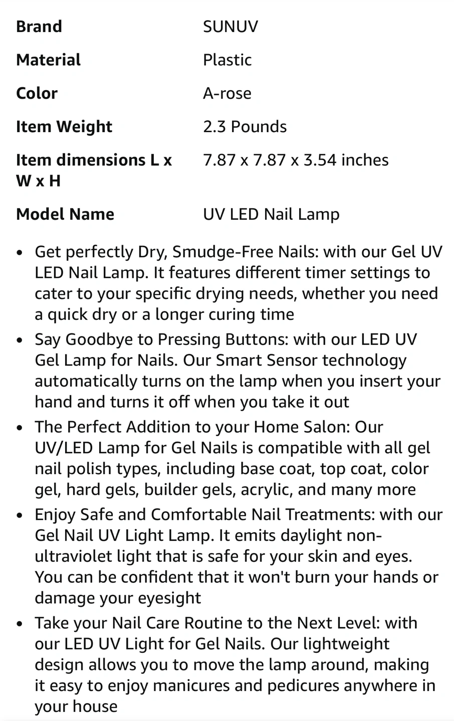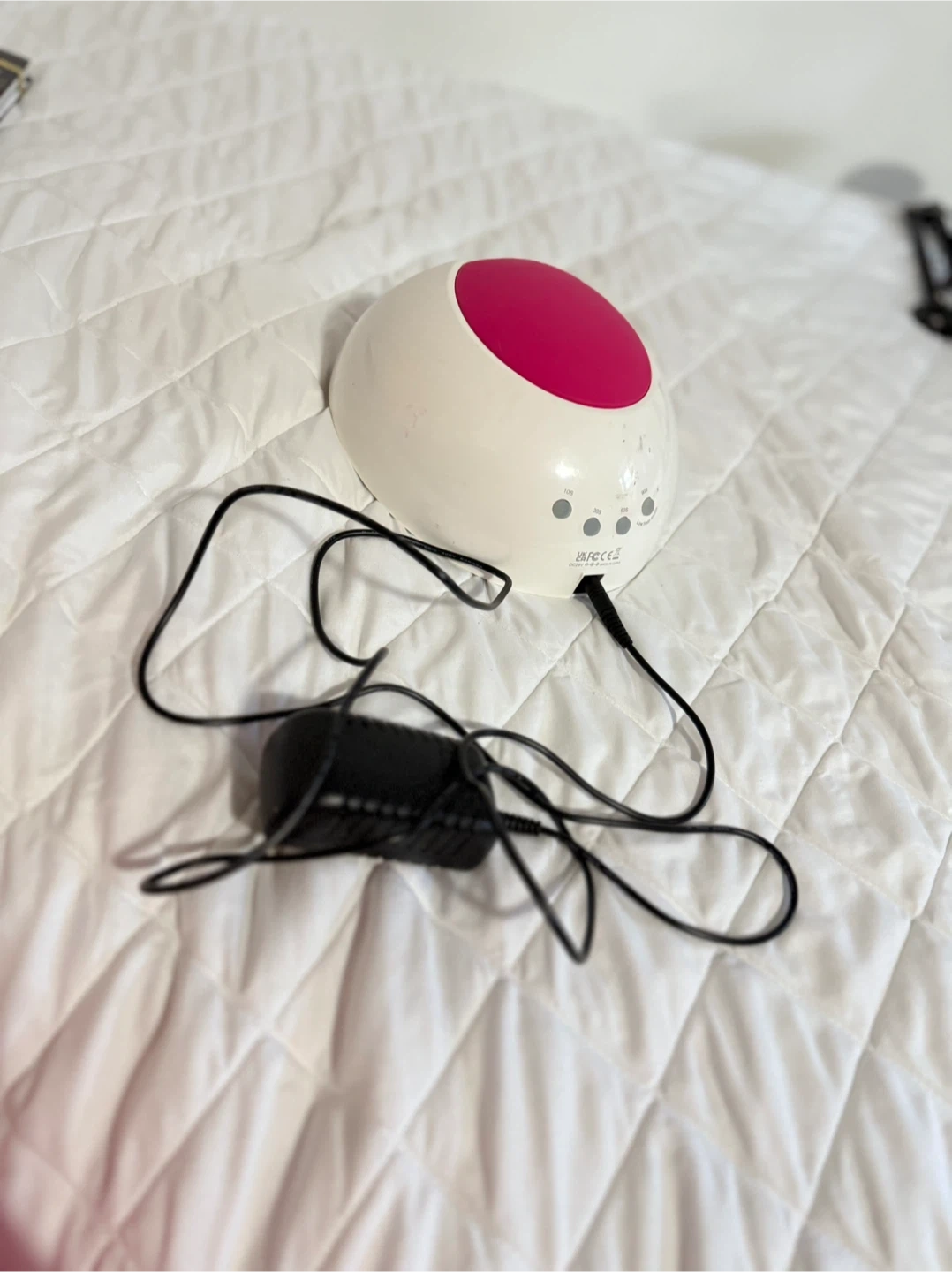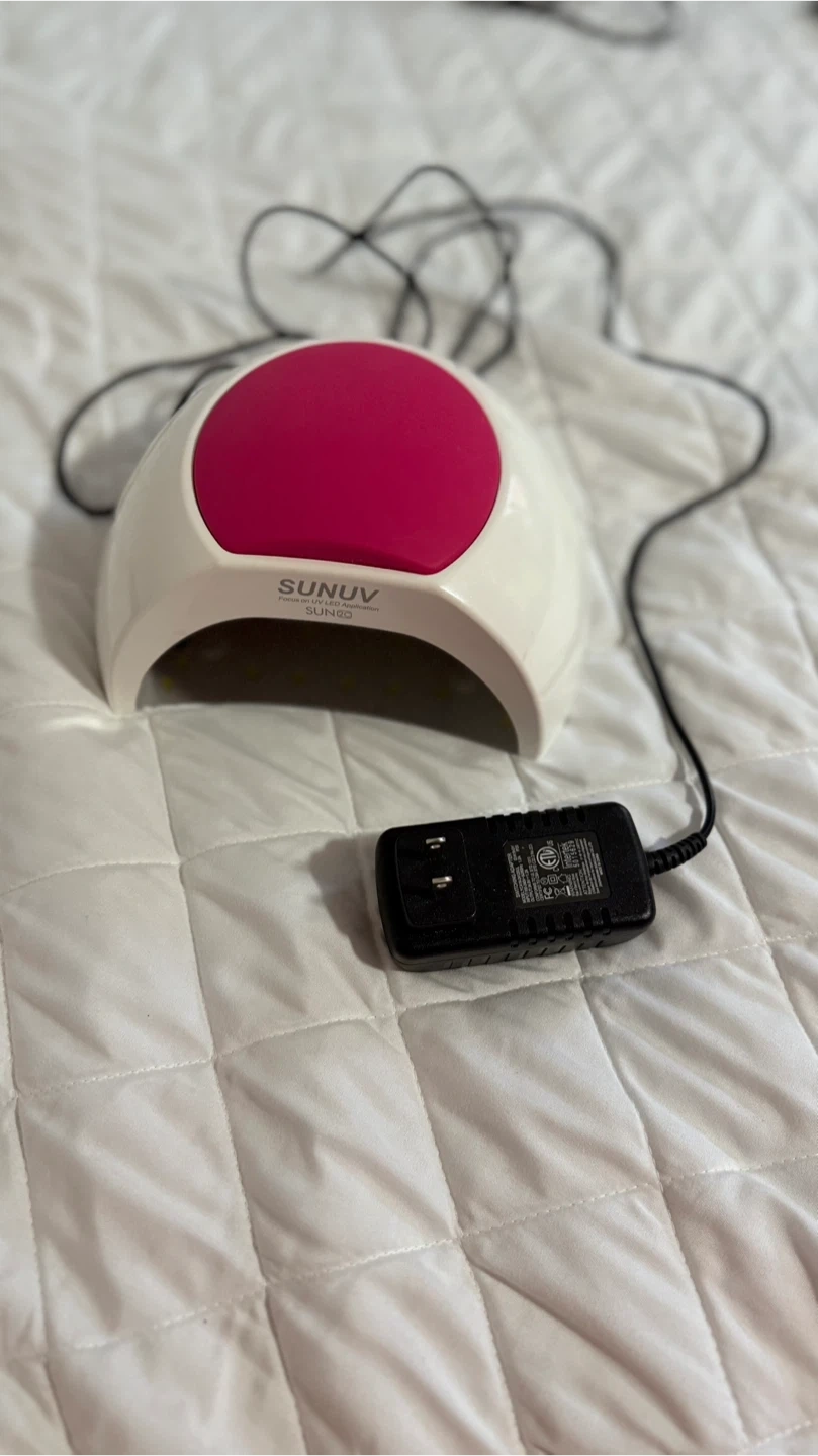 I'm selling a SUNUV UV LED Nail Lamp. It features different timer settings to cater to your specific drying needs, whether you need a quick dry or a longer curing time. It emits daylight non-ultraviolet light that is safe for your skin and eyes. Included is the charger.