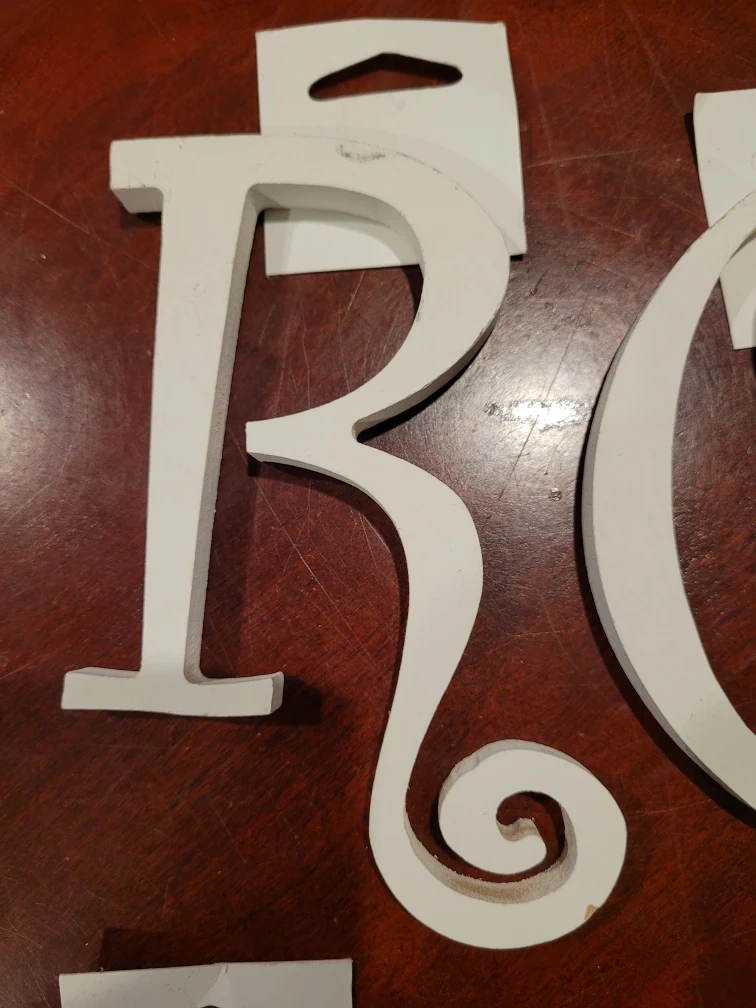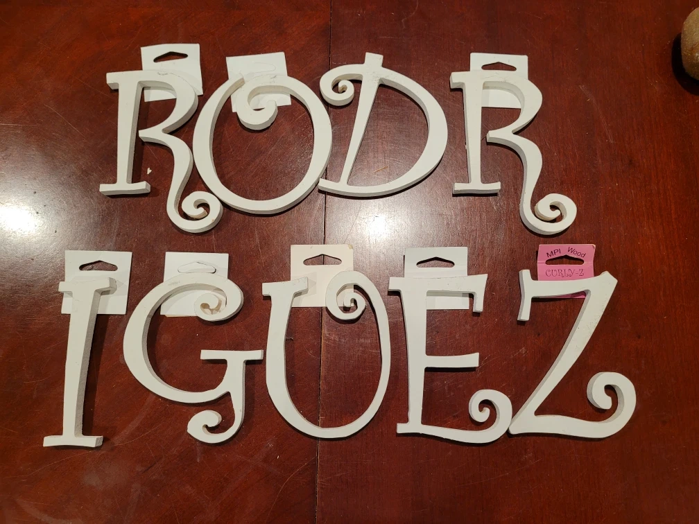 I'm selling a set of MPI Wood letters. They spell out RODRIGUEZ, but you can use them for anything you like! They are white in color and can be painted. I got these for a project last year, but I didnt end up using them. Each letter is 5 to 5.5 inches high. I paid 3.99 for each letter.