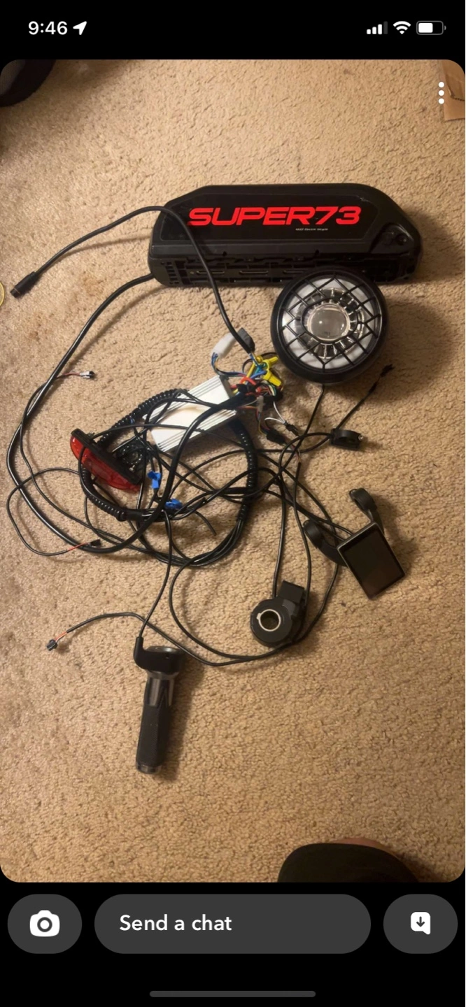 Conversion kit of Super73 ebike parts. Includes motors, battery, controller, display, throttle, and more. Kit can go up to 35 mph! Sold as is and price is negotiable!