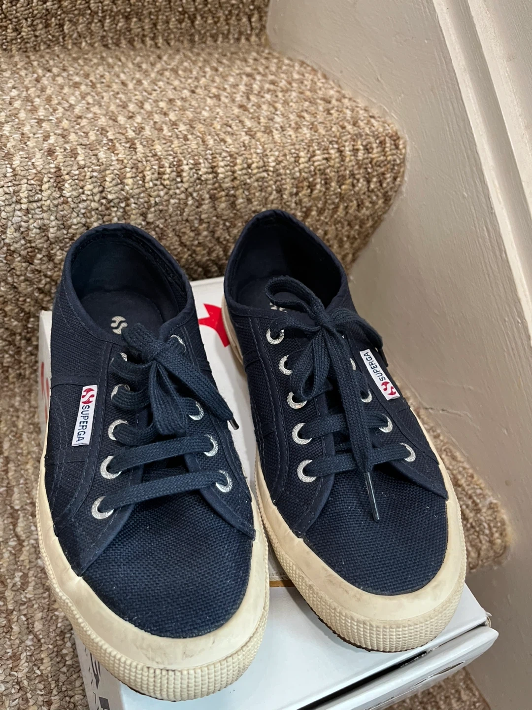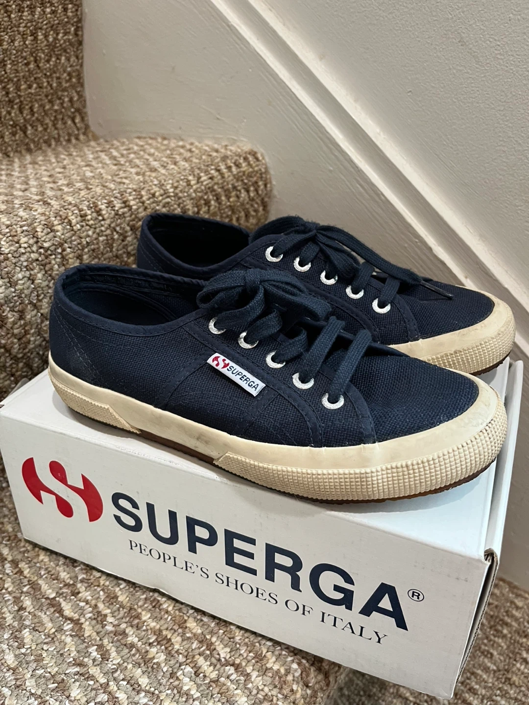 Selling a pair of Superga 2750 Cotu Classic shoes in navy! They are a women's US size 5 and come with the original box. These classic sneakers are a stylish and comfortable choice for everyday wear