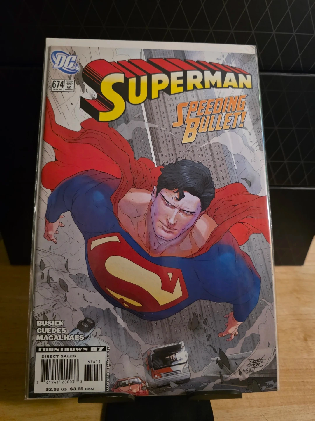 79Selling a copy of Superman #674, titled 'Speeding Bullet' from DC Comics! This comic features art by Busiek, Guedes, and Magalhaes. It's from the Countdown series, issue 07. A great addition to any comic book collection!