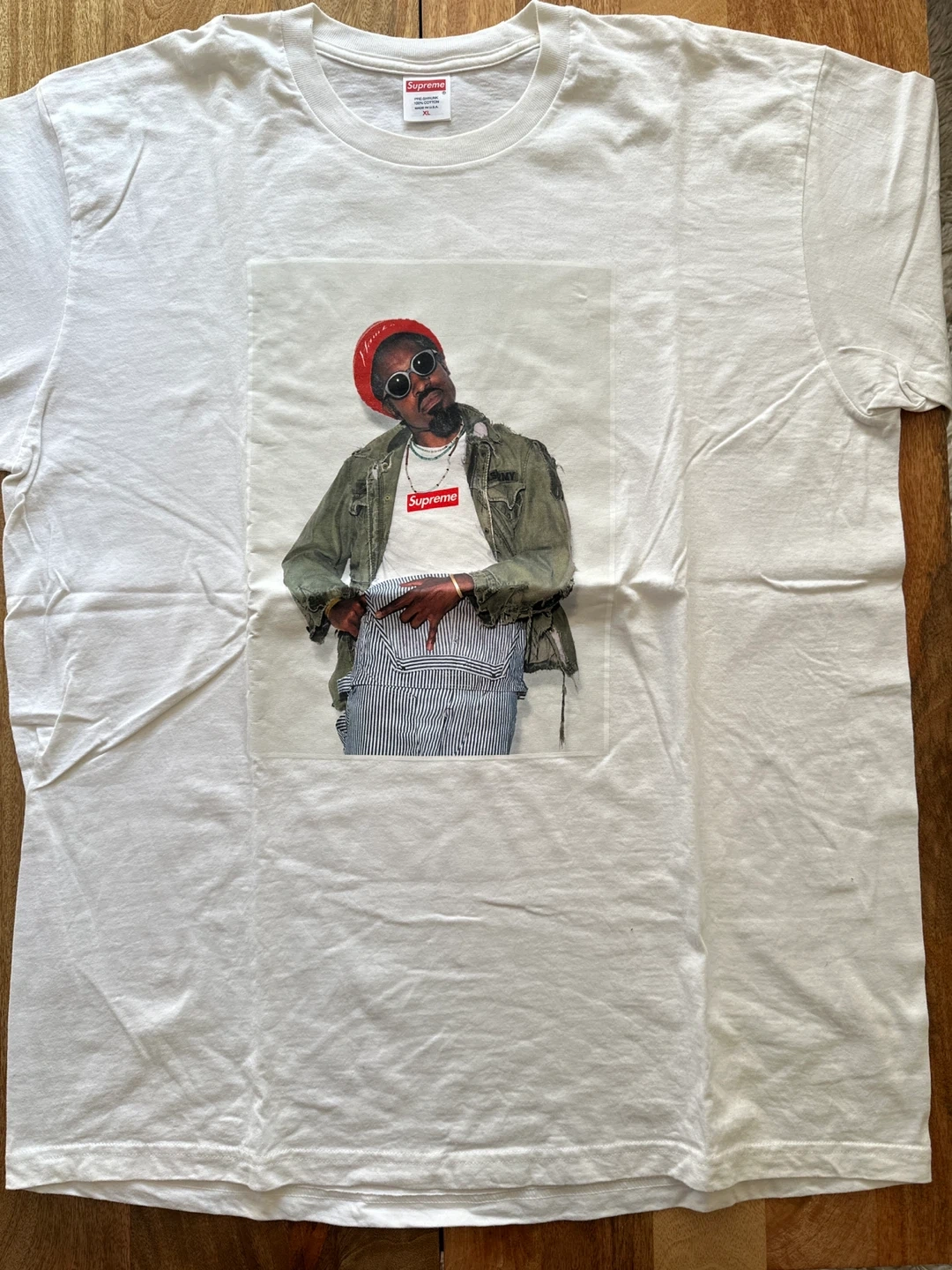 Selling a Supreme Andre 3000 T-shirt in white, size XL. The shirt features a graphic print on the front. It's in great condition and ready for a new home!