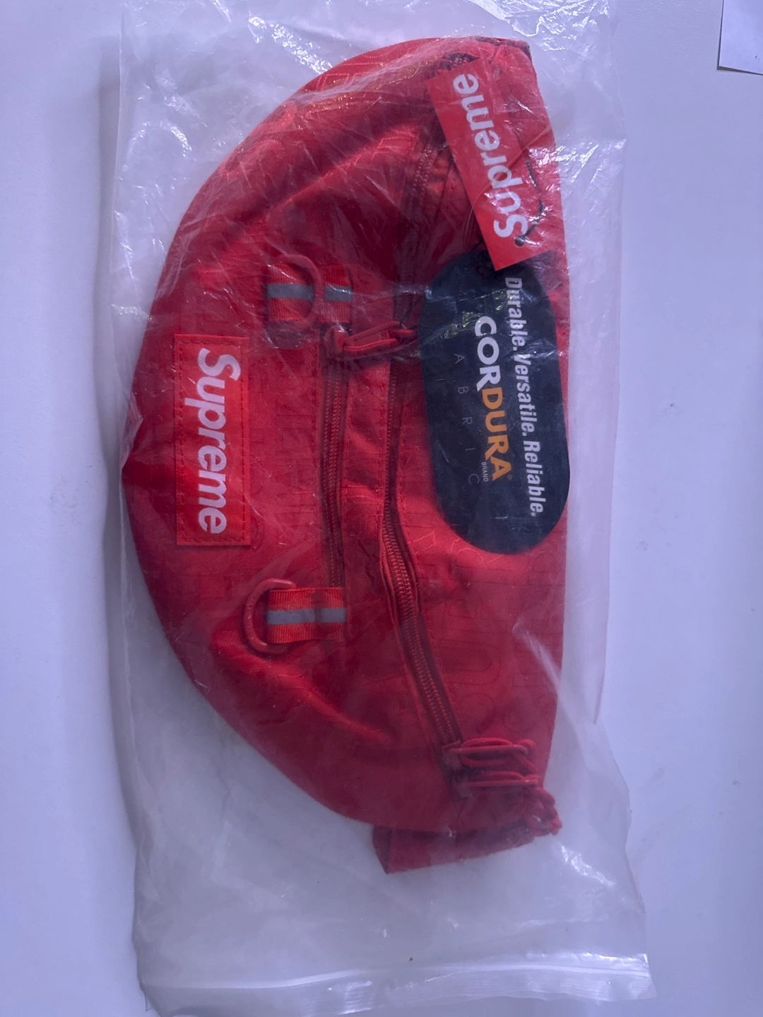 Brand new Supreme waist bag. Red Cordura fabric. Adjustable strap. Small size. Perfect for everyday carry. BRAND NEW.
