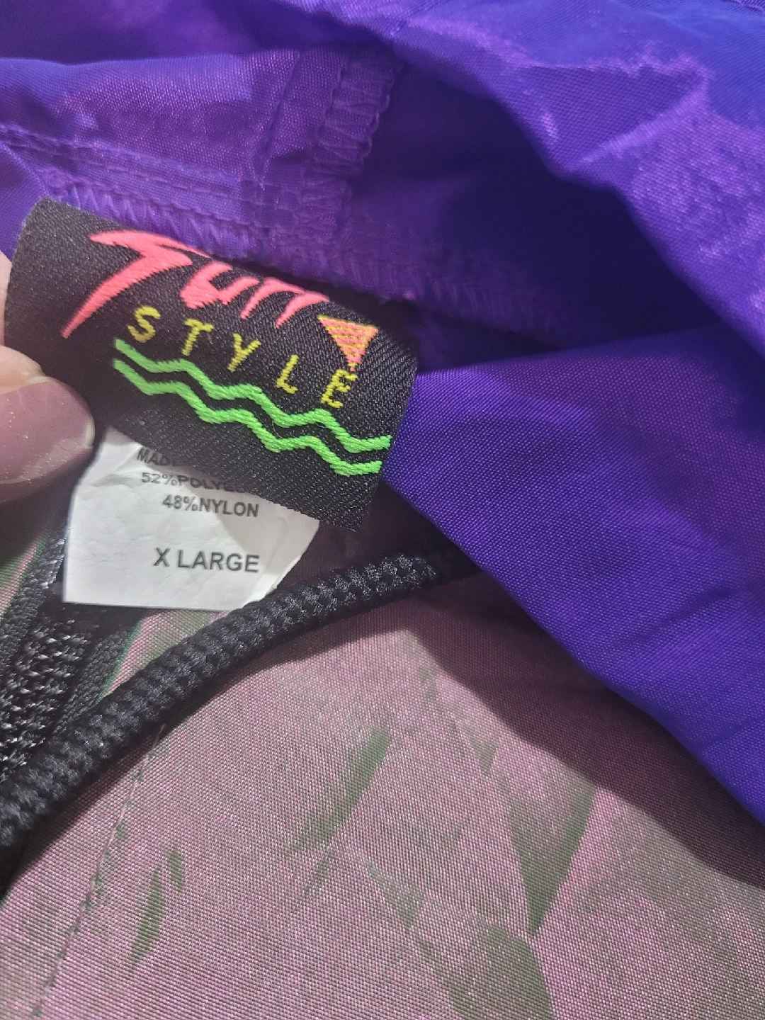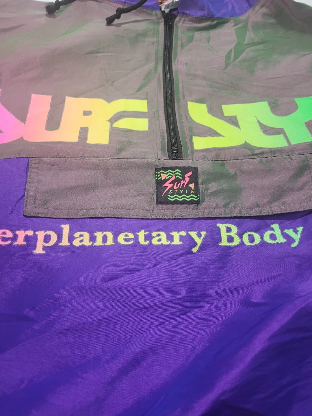 60Selling a Surf Style Interplanetary Body Gear jacket in size XL. It's a fun, vibrant piece with a unique design. The jacket is made of 52% polyester and 48% nylon.