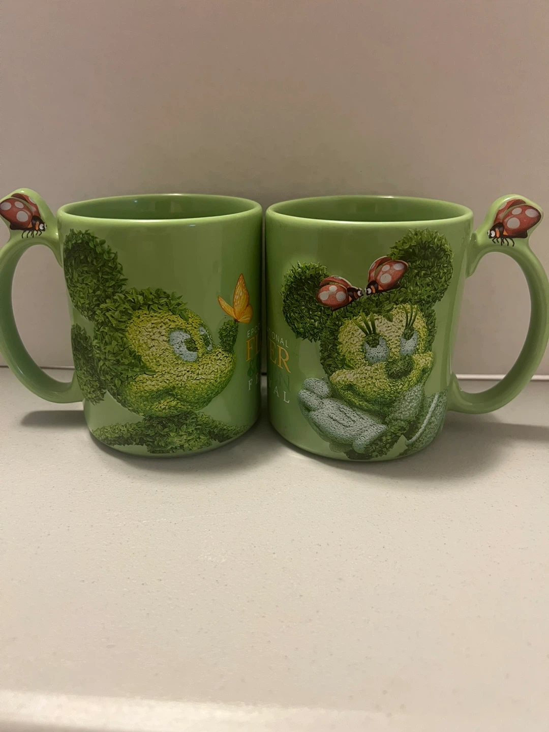 Up for sale is a charming and pair of authentic Disney Epcot International Flower and Garden Festival coffee mugs from the 2013 event! This set features Mickey and Minnie Mouse as topiaries, perfect for any Disney collector!