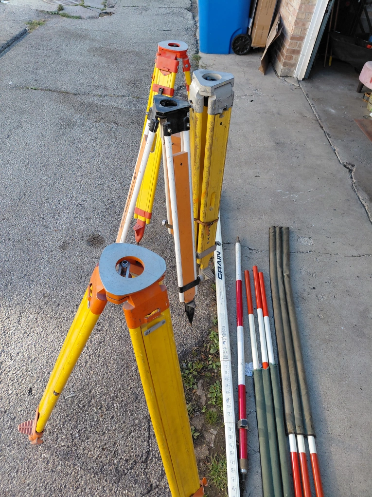 Selling surveying equipment including tripods and rods. Brands include Dietzen and Crain. Great for professional or personal use $100 for everything!!