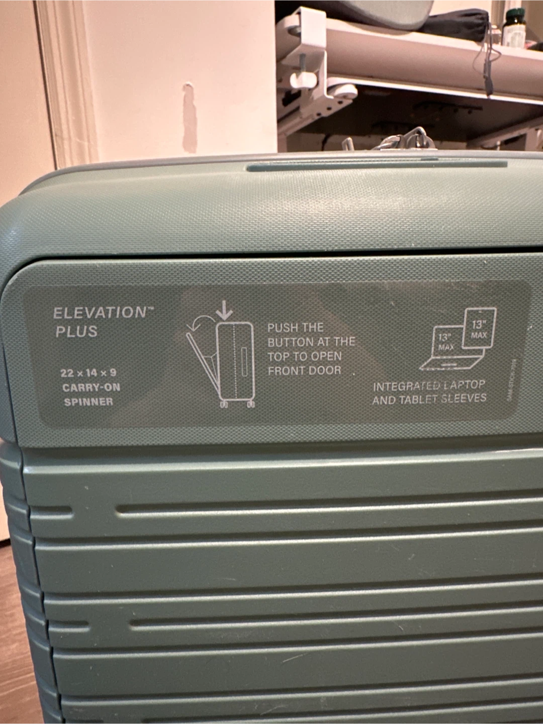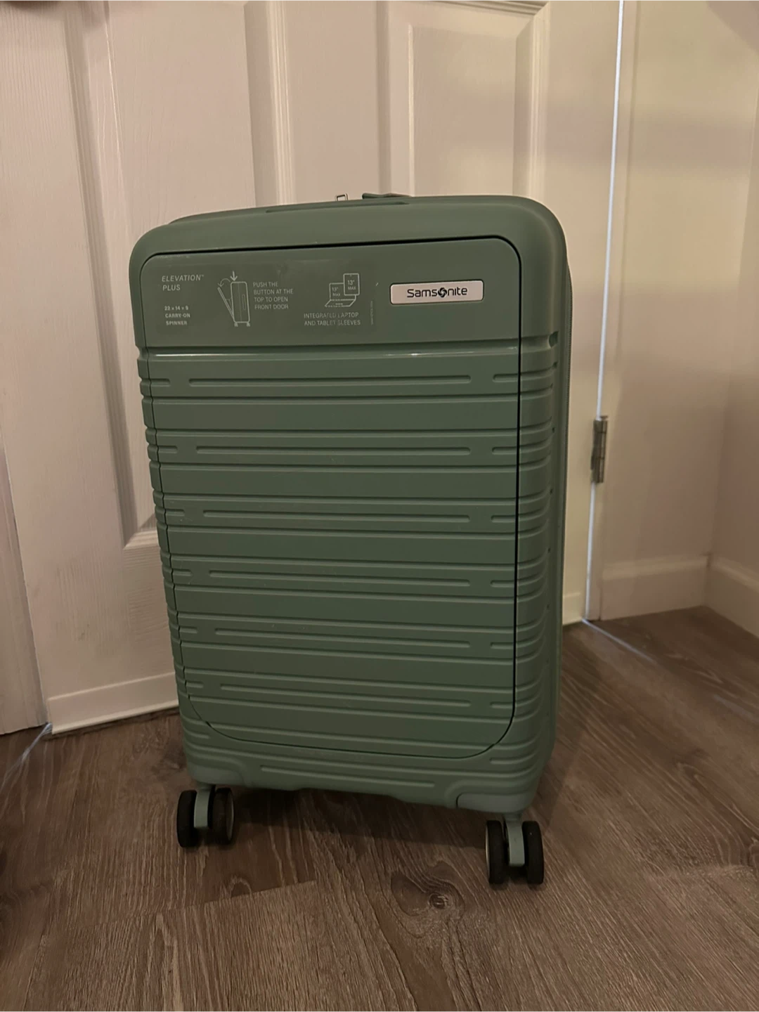 Selling a Samsonite Elevation Plus 22 x 14 x 9 carry-on spinner in a nice green color. It features integrated laptop and tablet sleeves.