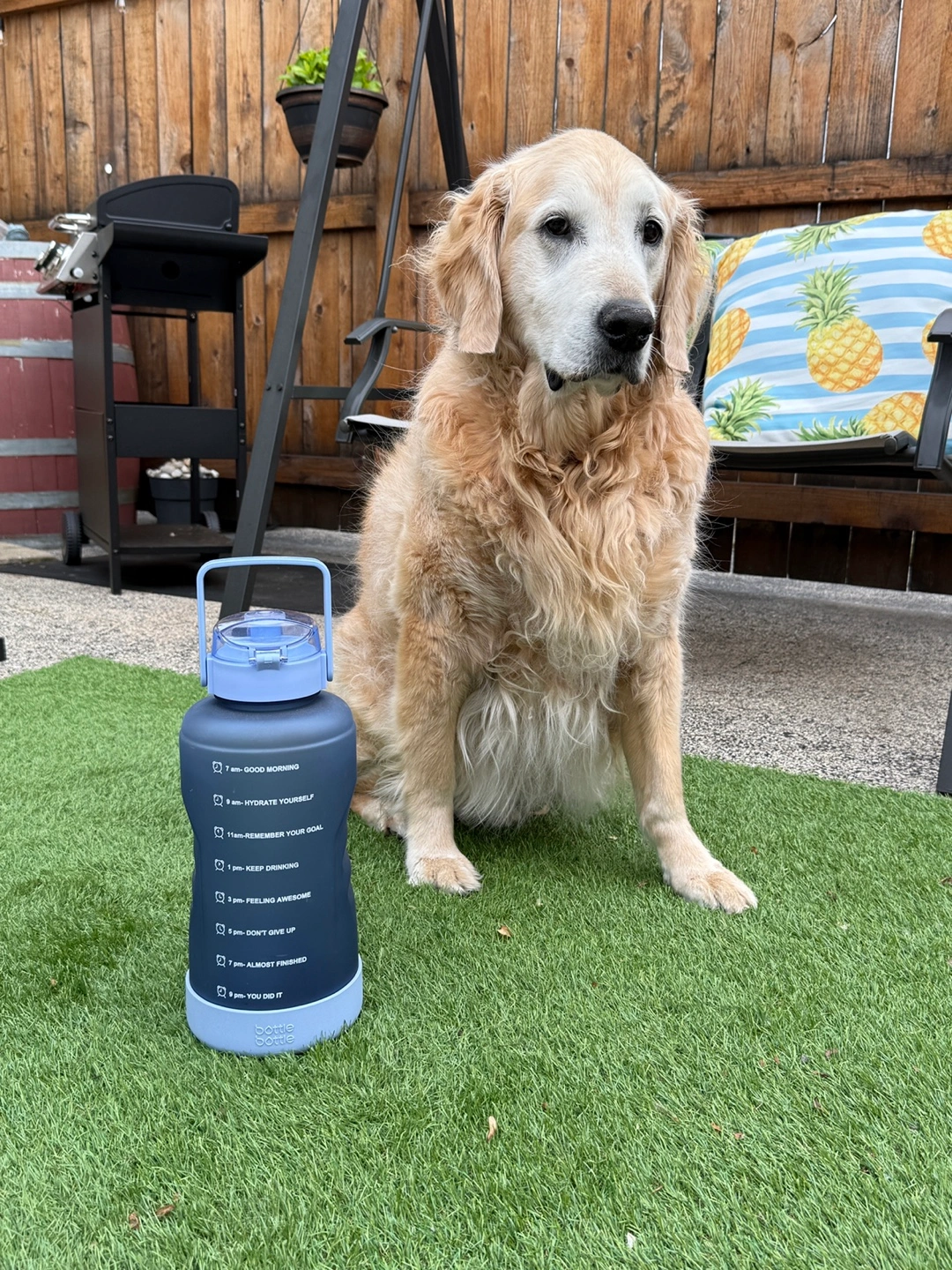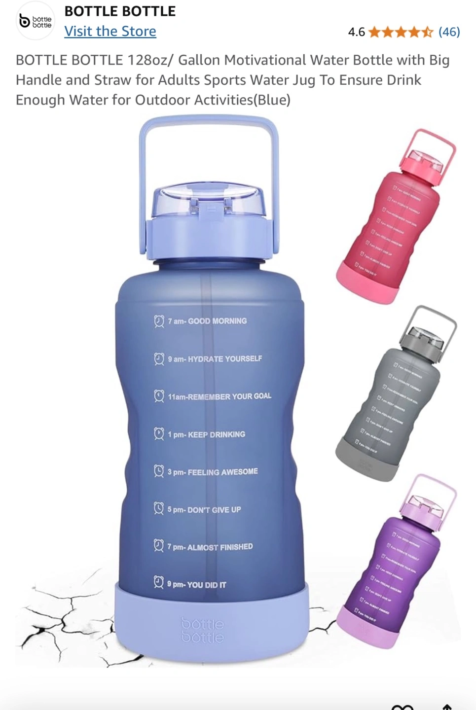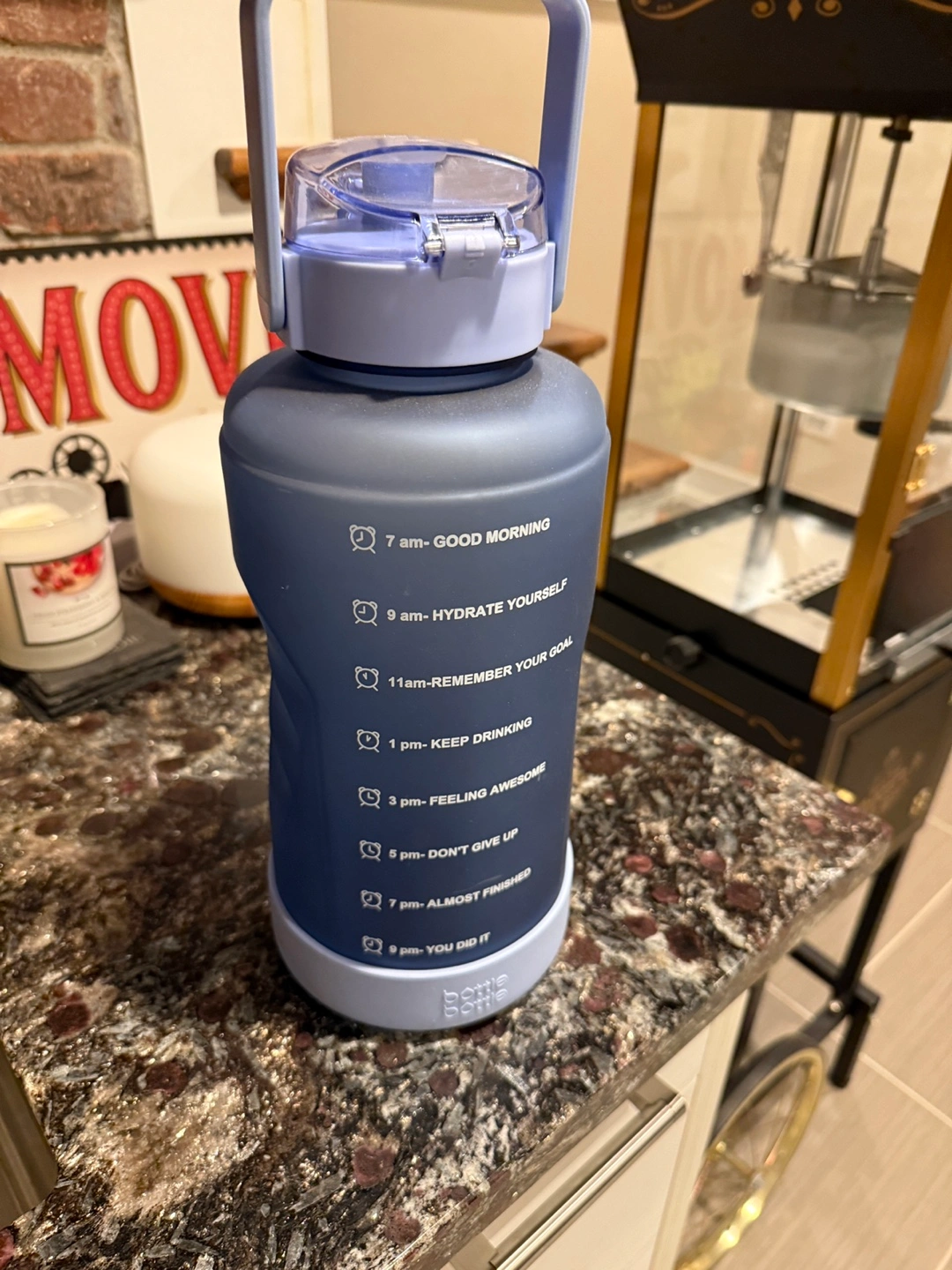 New, Large capacity water bottle. Features a carry handle and straw. Motivational quotes printed on the side. Great for hydration on the go.