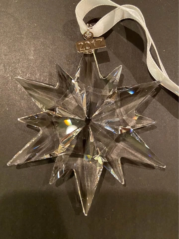 76Swarovski Annual Christmas Ornament, 2017. Excellent, Like-New Condition. No cracks, chips or scratches. Selling my Mom’s collection…Has been carefully packed away for years. **Comes in original box, as shown. Stand is not included. Cash only. •Meet in Garfield Ridge, Chicago, near Midway. •Willing to meet near Oak Lawn, EP, Alsip, Orland, Palos, Burbank, Bridgeview, Countryside, LaGrange, Burr Ridge, Darien ☺️