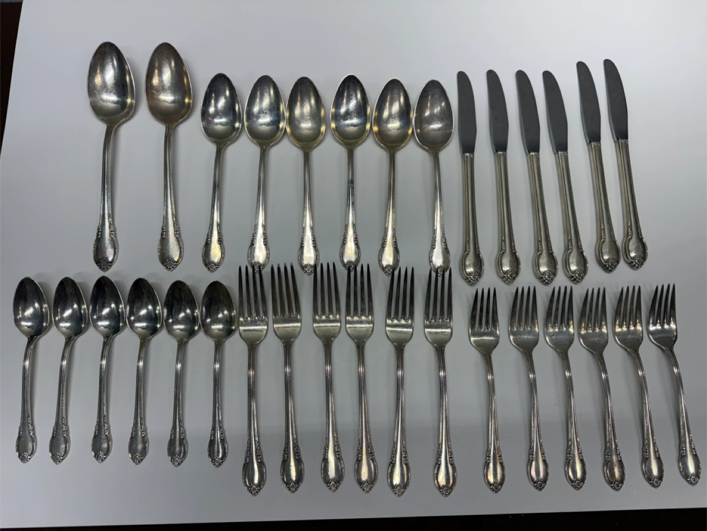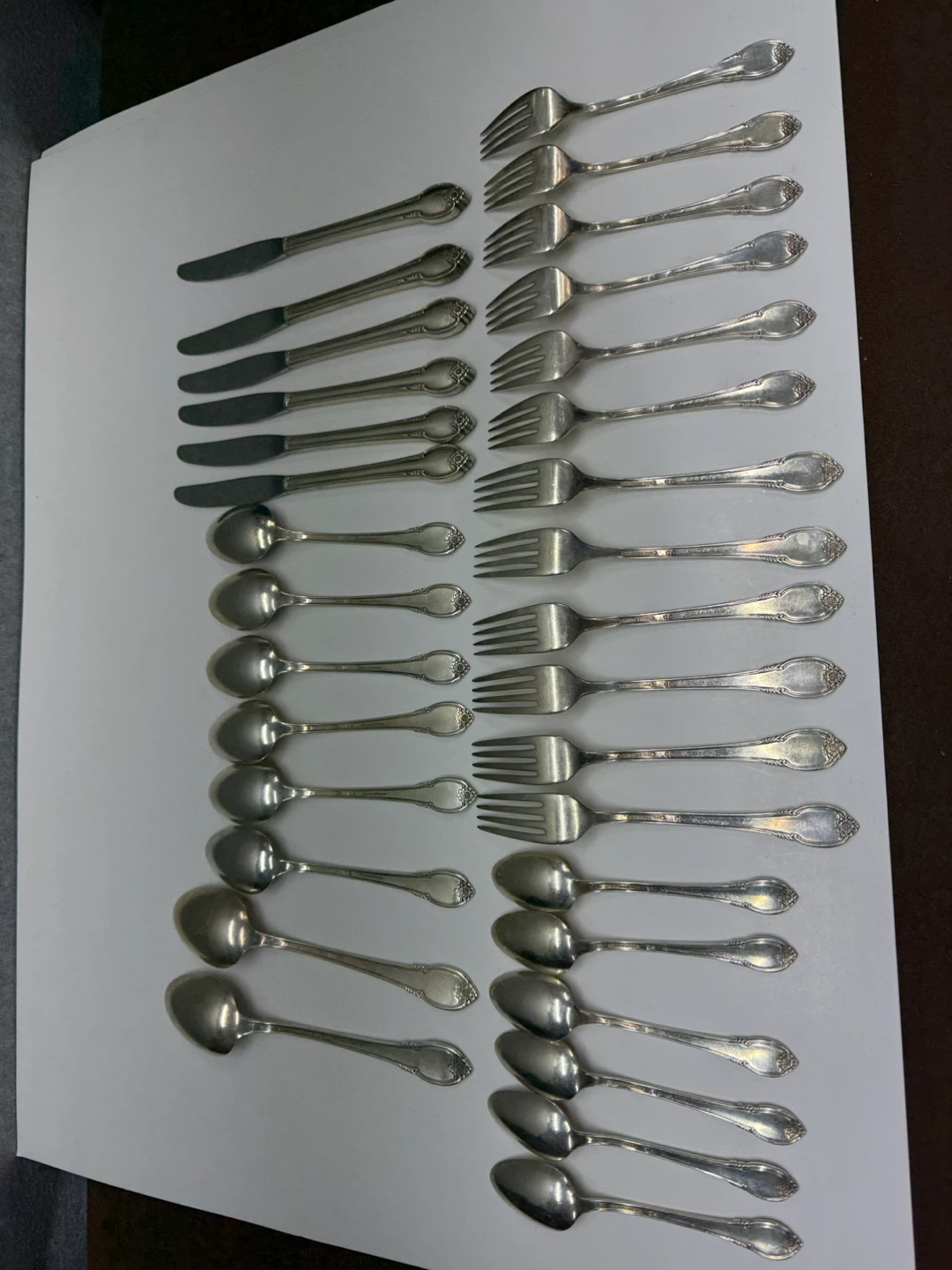 All pieces feature the classic Remembrance pattern by International Silver (IS).