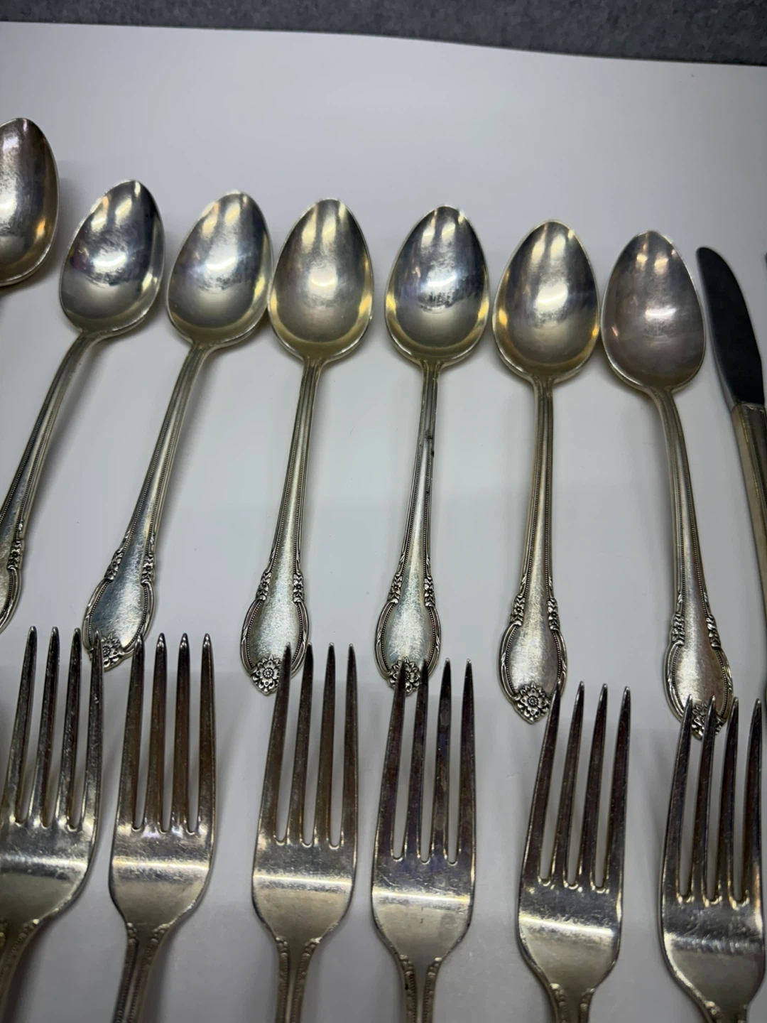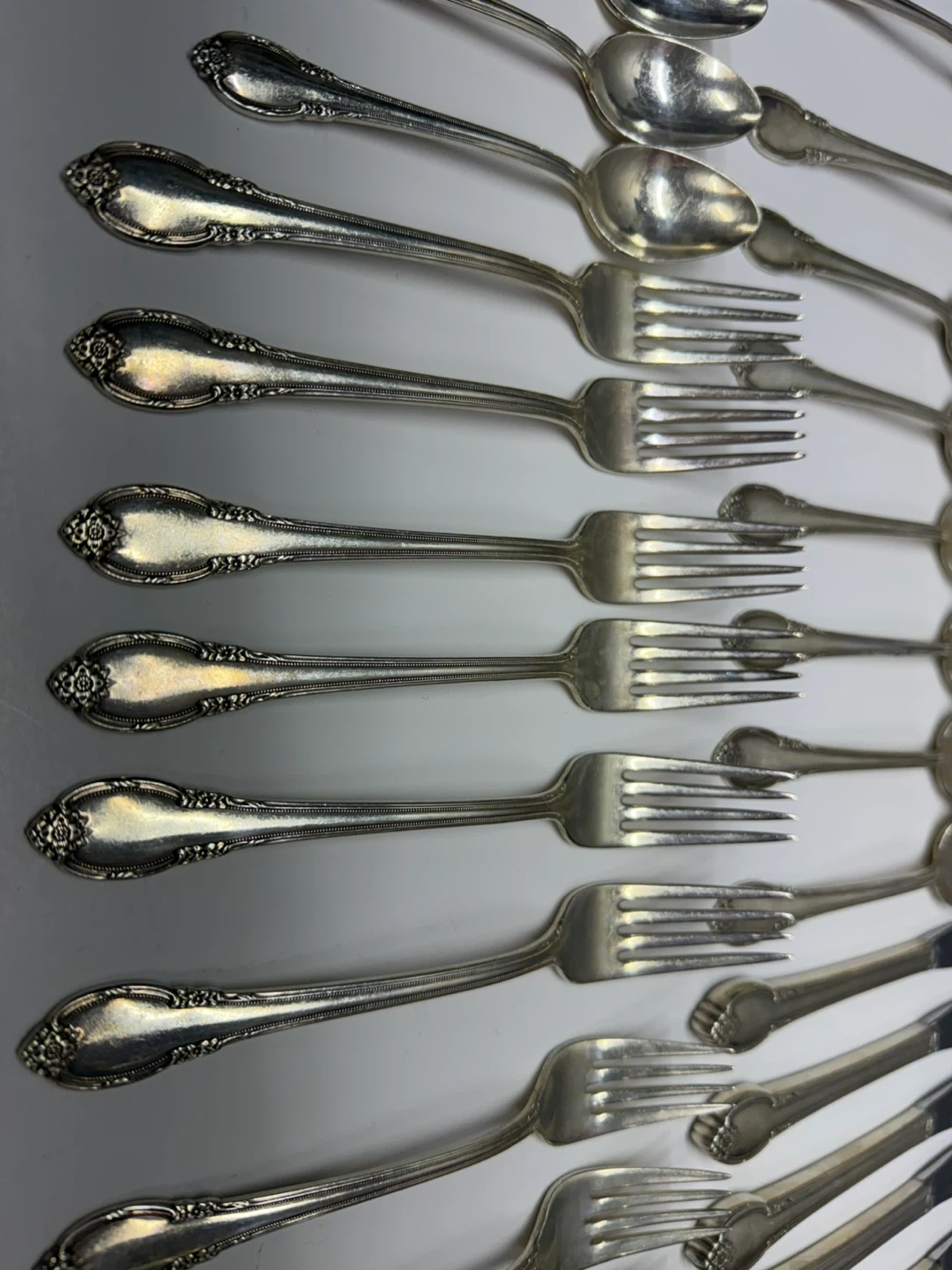Vintage 1847 Rogers Bros "Remembrance" silverplate flatware set.