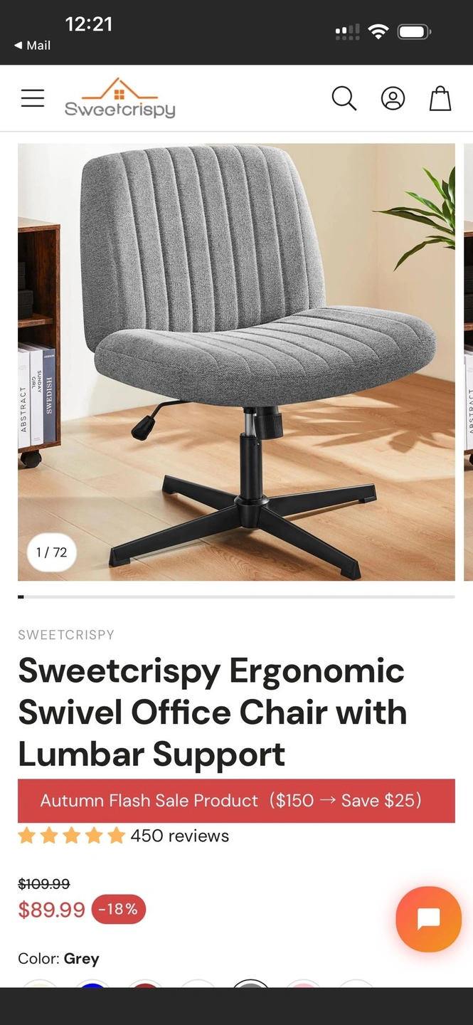 I bought this chair because I like to sit cross-legged at my desk, but I didn’t realize it didn’t have wheels, which I needed. It’s still in the box, I didn’t put it together once I saw the legs of the chair. If you’re looking for a wide comfortable chair with lumbar support, this is a great choice! Material: Fabric Type: Chairs & Stools Brand: Sweetcrispy