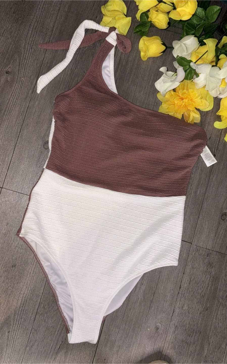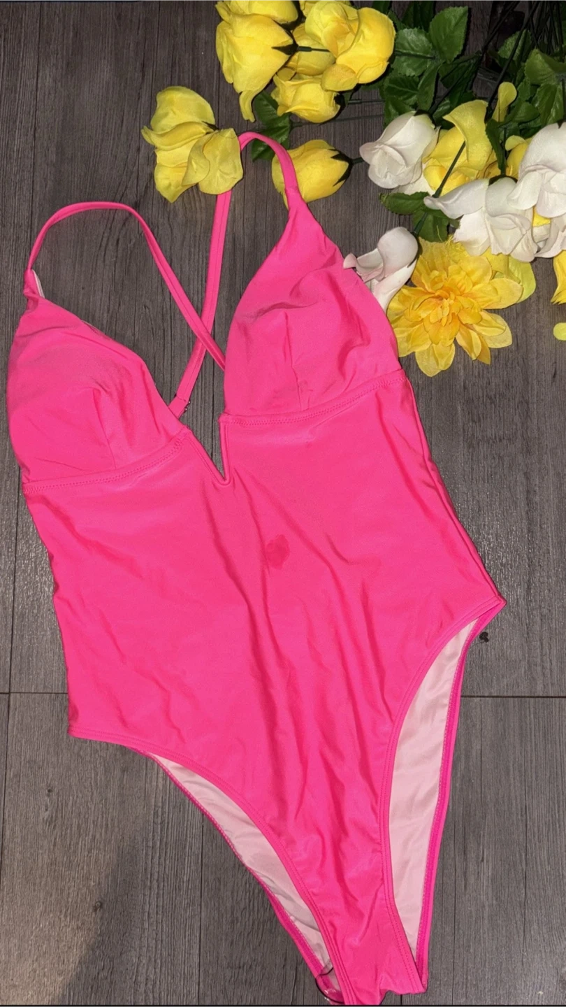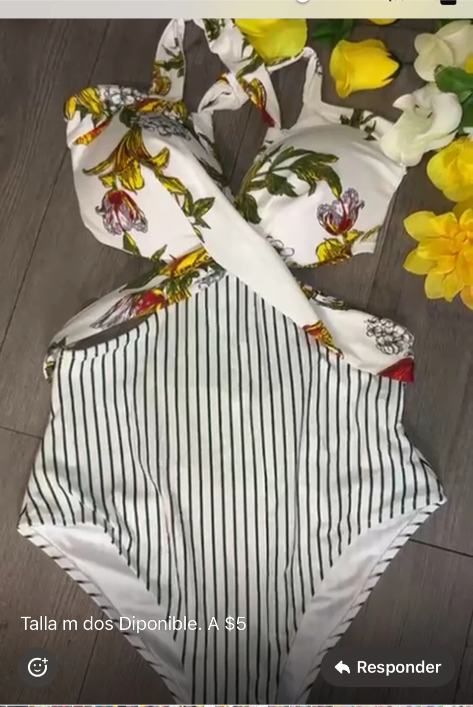 I'm selling a swimsuit in size M. It features a unique design and vibrant colors. Perfect for a day at the beach or pool!
