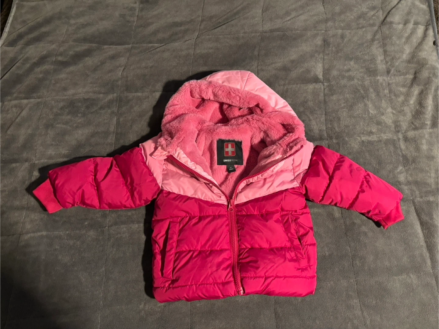 10Cute Swiss Tech puffer jacket in pink! It has a cozy, soft lining in the hood and upper body. Perfect for keeping your little one warm and stylish!