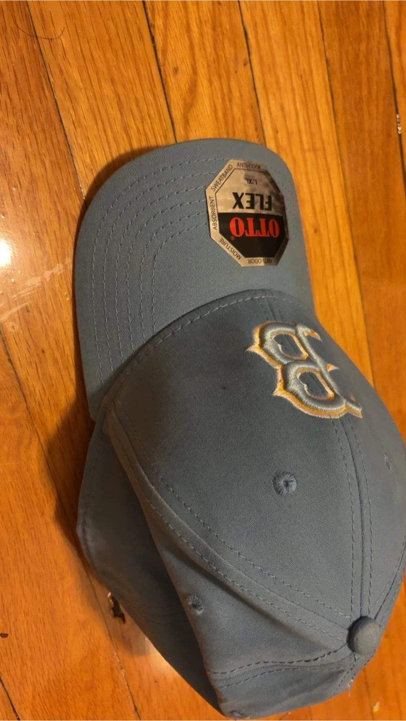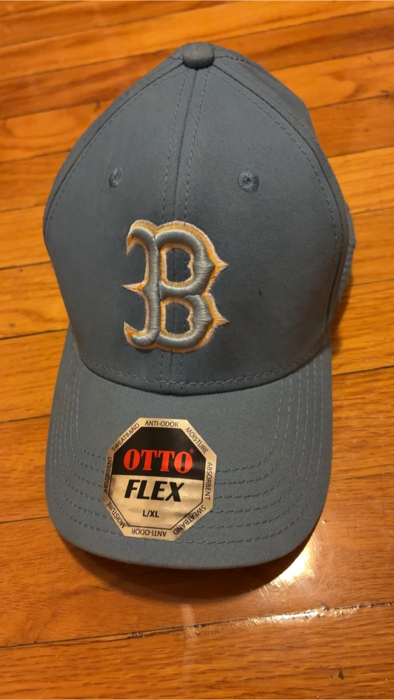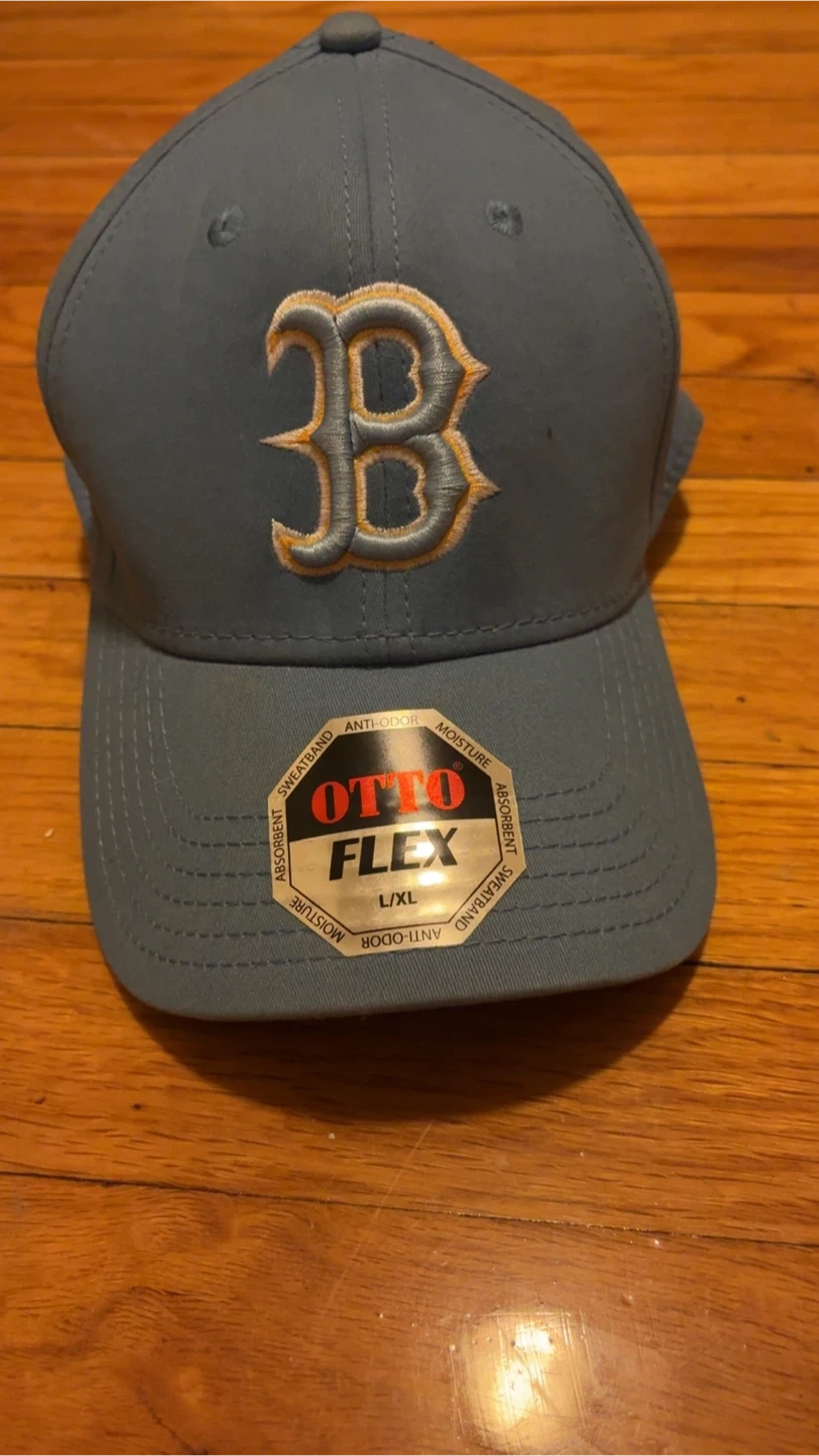 This Otto Flex baseball cap is blue with a large 'B' logo. It's a size L/XL and features anti-odor and moisture-wicking technology. Great for any Boston fan!
