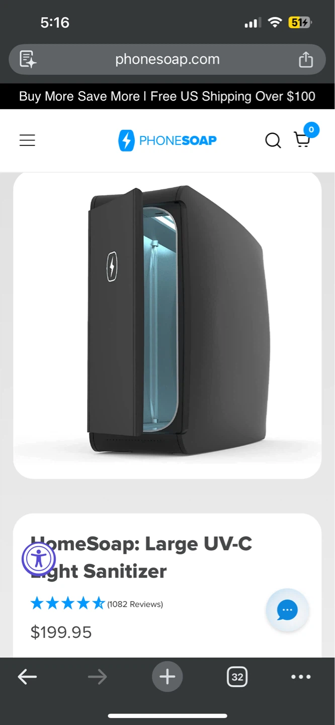 HomeSoap disinfects using medical grade UV-C light technology. Large enough for tablets, multiple phones, baby bottles, pacifiers, personal care items and more.