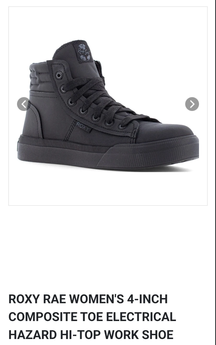 Roxy Rae Work casual high-top shoes. Composite toe, electrical hazard protection, slip-resistant sole, and metal-free construction. Includes original box.