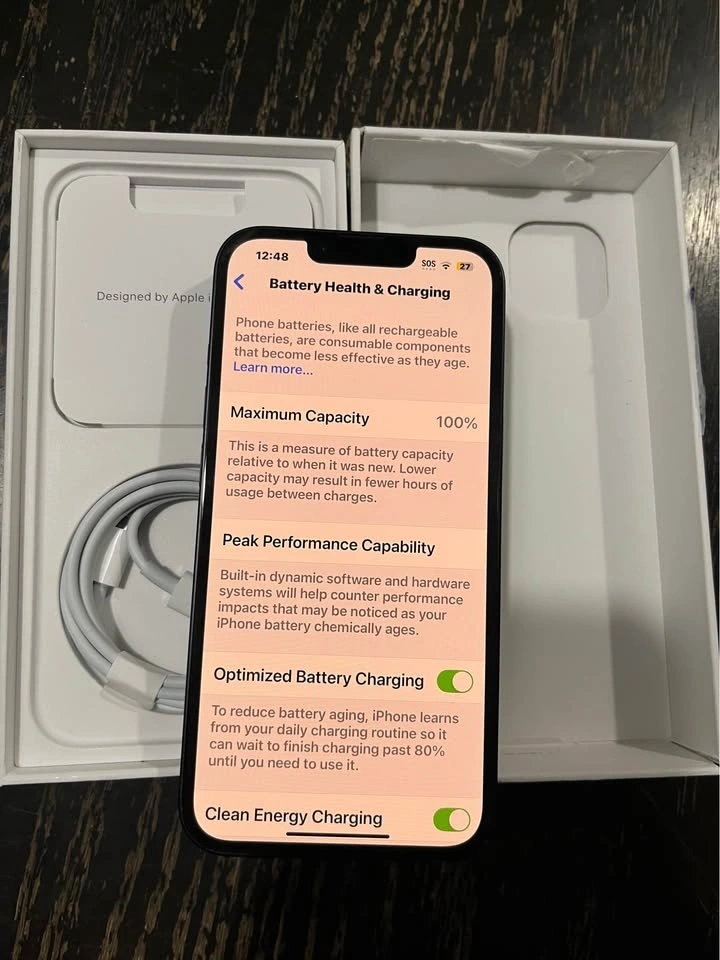 Almost new iPhone 13 128GB with 100% battery health and no issues. This phone is locked to Verizon,Straight Talk or Total Wireless. It was only opened and used for 1 day on WiFi. I got a new phone from my carrier, so this one is extra. Let me know if you're interested!