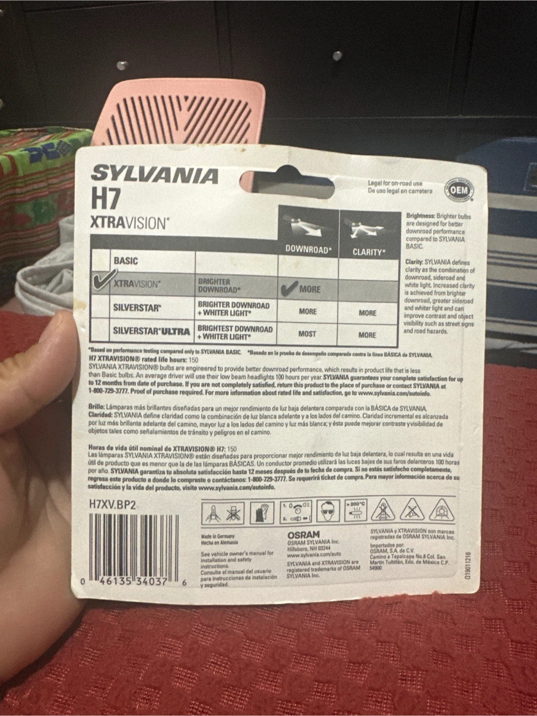 Selling a brand new set of Sylvania H7 XtraVision halogen headlight bulbs. These bulbs provide a brighter downroad for increased visibility. They are designed to improve contrast and object recognition for safer driving!