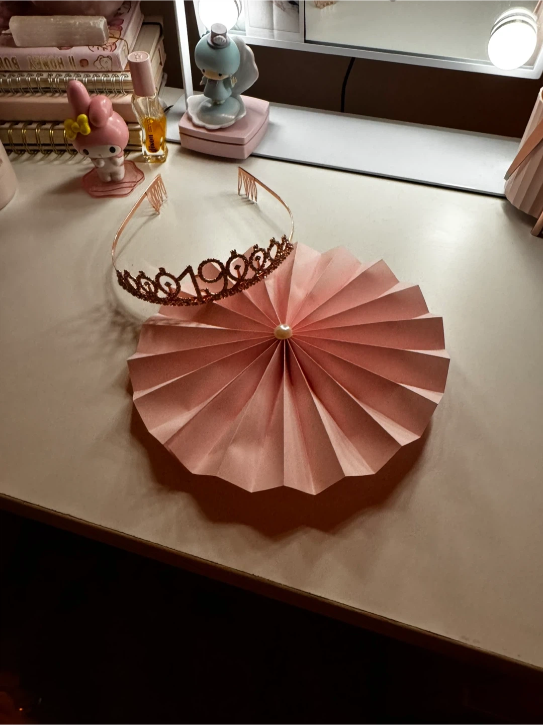 π₯ FREE Rose Gold "19" Tiara and Pink Paper Fan Decoration