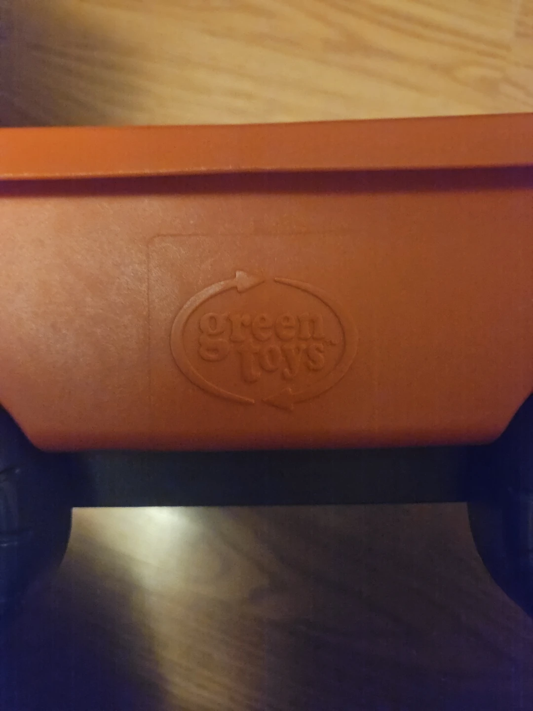 This is small red wagon by GreenToys. Perfect for kids to play with. Is Made in the USA and is 100% recycled plastic.