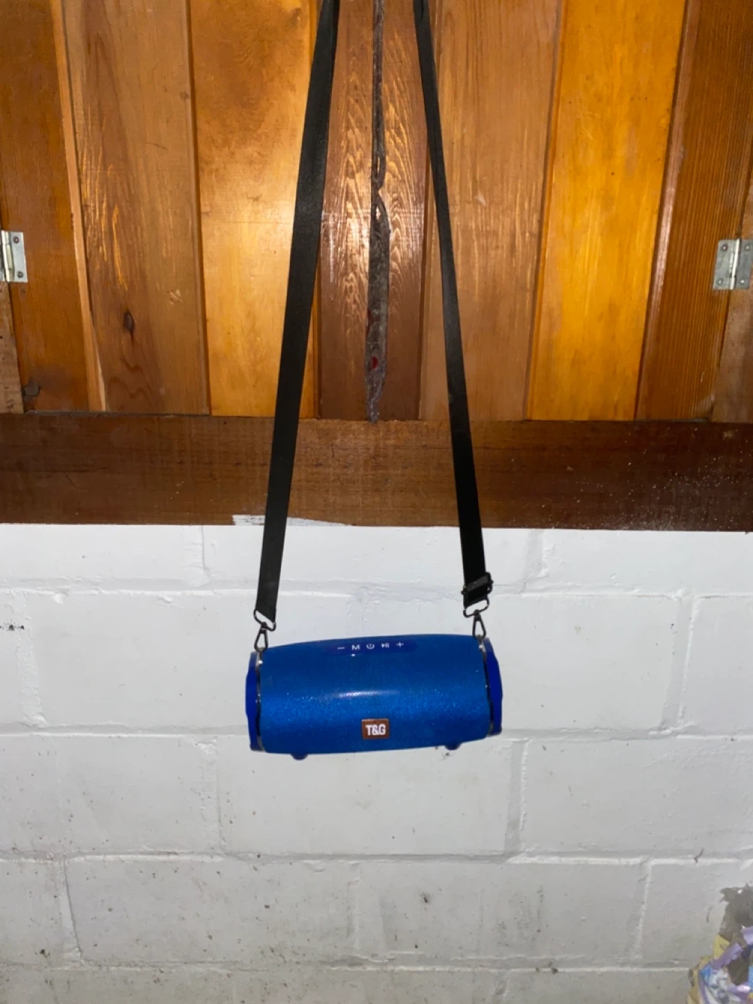 15Selling a blue T&G Bluetooth speaker. It comes with a strap for easy carrying. Great for good music