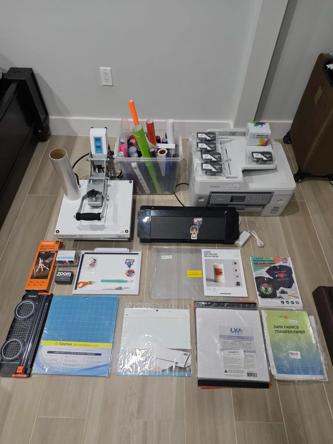 0Will not respond to, " Is it still available" Now.. I am selling my T shirt workshop. Everything works PERFECTLY! It comes with everything you need to start pressing t shirts!! I am selling because I just bought a DTF ( DIRECT TO FILM) printer. I invested $3000 into the machine and just trying to make some money back. This is awesome for beginners and novice alike. I'm actually a little nervous selling it because I haven't recieve my new printer yet but I'm taking the step anyway...lol Come check it out, I am giving you an amazing deal so please no low offers or I will not respond, and if it is still posted it is still available. Will not respond to, "is it still available". If you like what you see and you have questions, I will be happy to answer all. Let's do business and be blessed! Included is: 1- 15x15 Heat Press machine ( $400) 1 - Silhouette Cameo 4 ($200) 35 - Rolls off multiple color vinyl 12x15 ($20 a roll) 10 - Adhesive cutting mats ($12 each) 60 - sheets of adhesive vinyl ( $50 ) used for wall,vehicle, or cups decal 1- Brother MFC-J6545DW ($650 on Amazon... look it up) 5- XXL ink cartridges still wrapped ( $200) 100 sheets of image transfer paper ($80) Vinyl cutter 2 Rolls of garment tape Zoom precision engraving point for Silhouette Vinyl peeling tools Image aligning tool