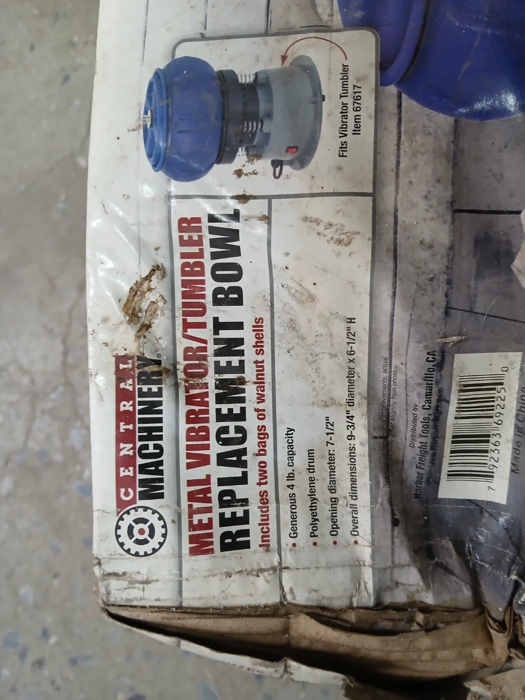 Selling a Central Machinery Metal Vibrator/Tumbler Replacement Bowl. It includes two bags of walnut shells and has a generous 4 lb capacity. The opening diameter is 7-1/2" and the overall dimensions are 9-3/4" diameter x 6-1/2" H. Fits Vibrator Tumbler Item 67617