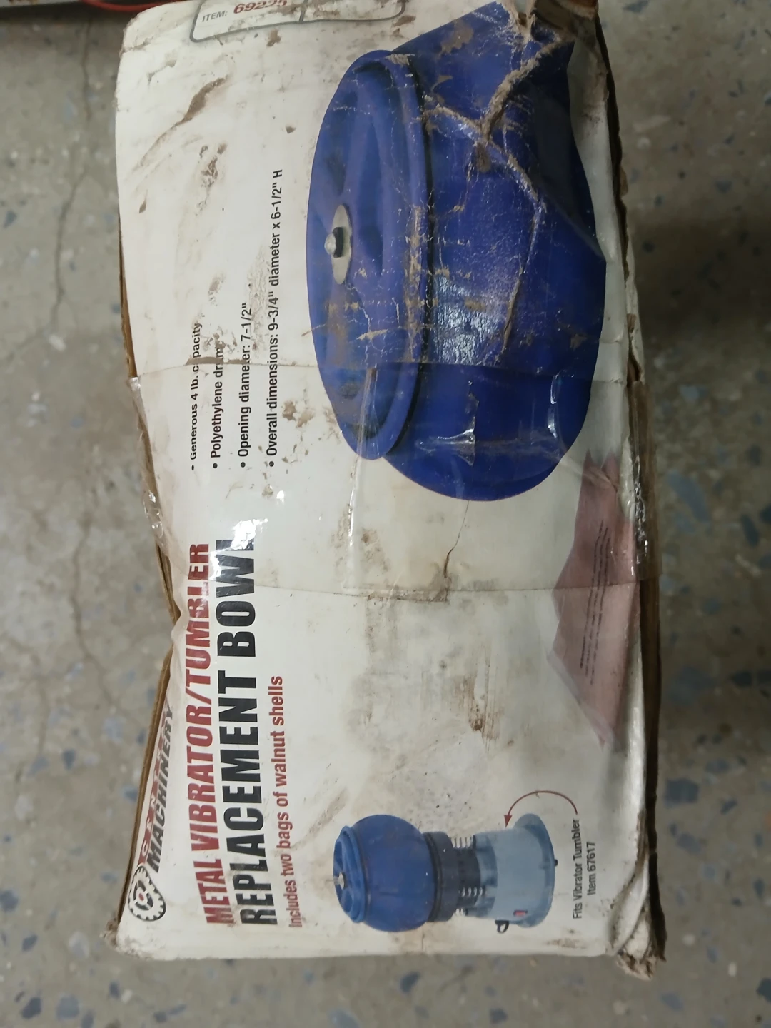 Selling a Central Machinery Metal Vibrator/Tumbler Replacement Bowl. It includes two bags of walnut shells and has a generous 4 lb capacity. The opening diameter is 7-1/2" and the overall dimensions are 9-3/4" diameter x 6-1/2" H. Fits Vibrator Tumbler Item 67617